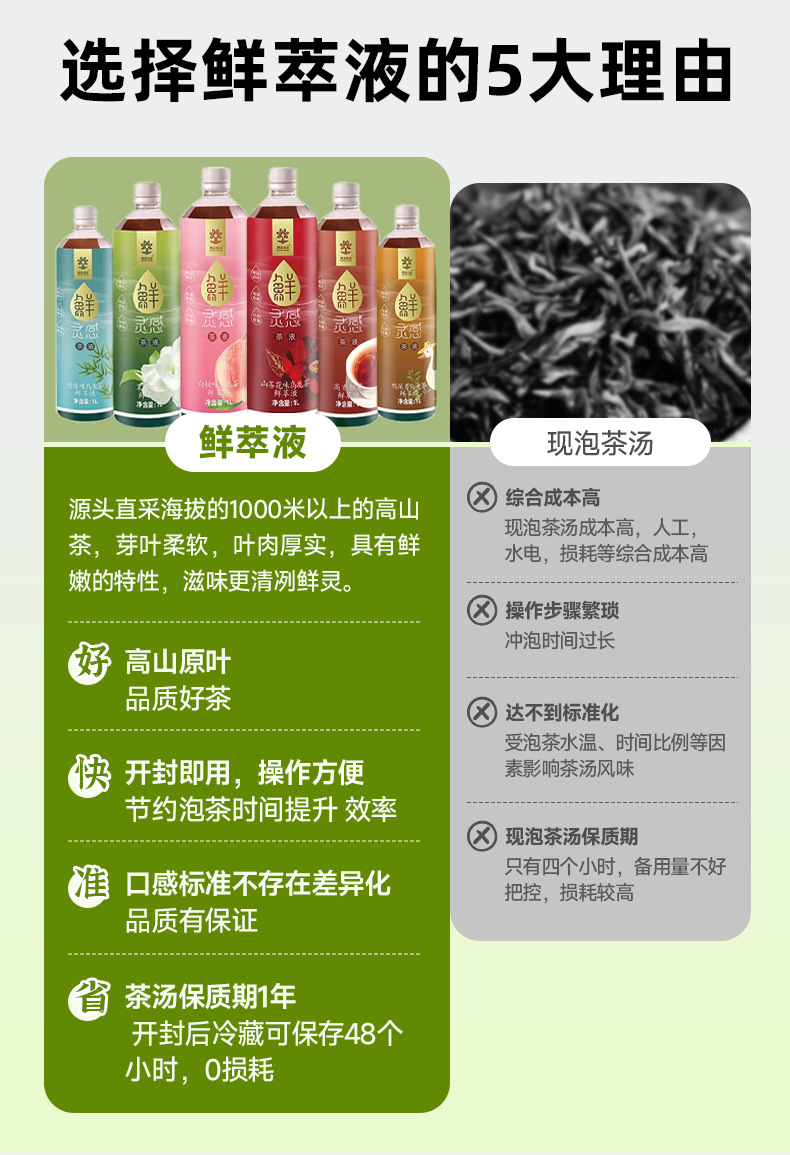 Мгновенный чай, свежий экстракт, жидкость без заваривания, оригинальная жидкость, свежезаваренный жасмин, утка, ароматная камелия, высокая ароматика, коммерческая упаковка 1L