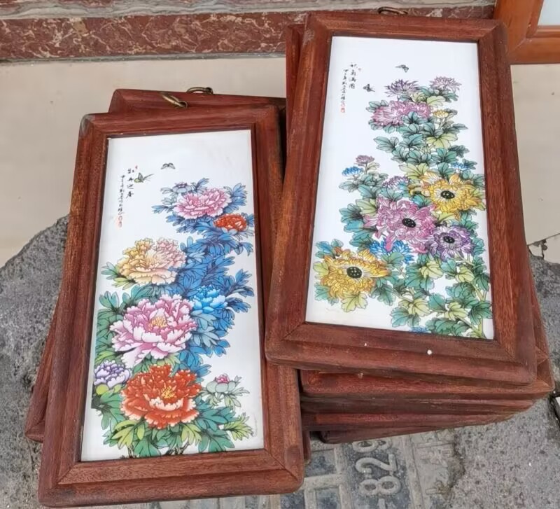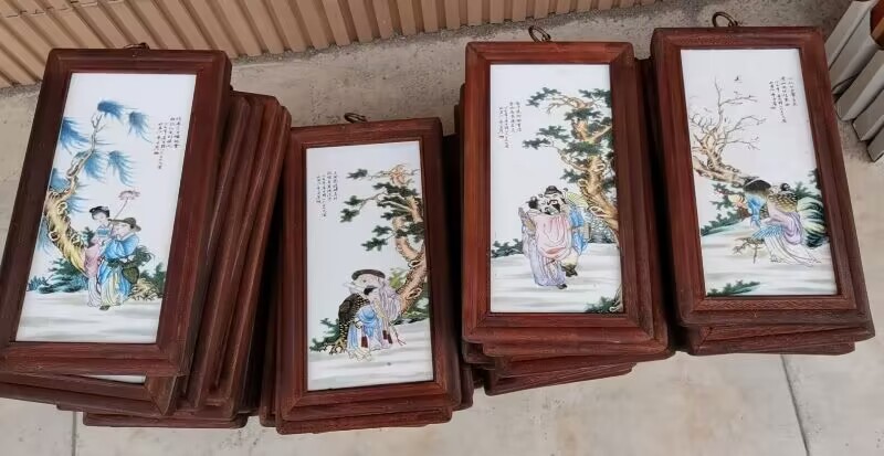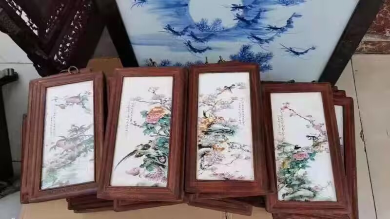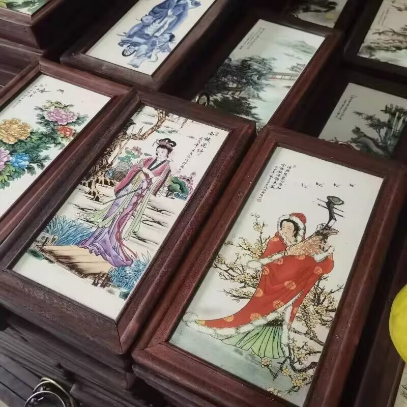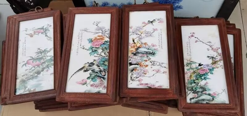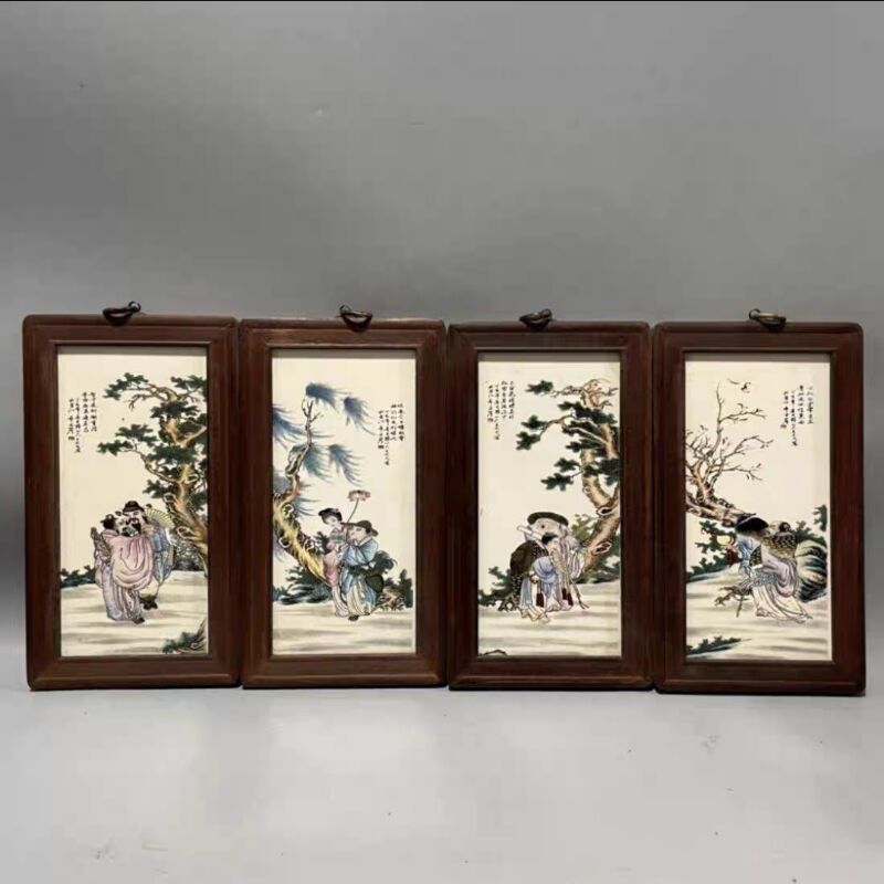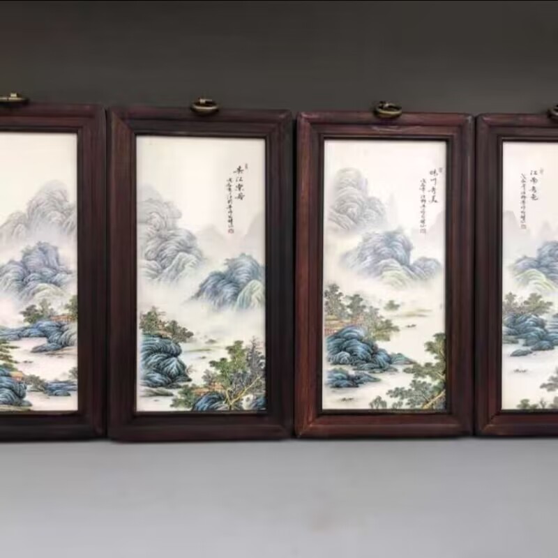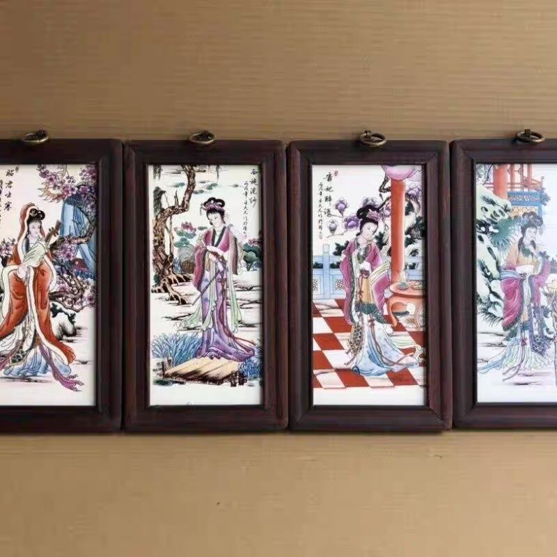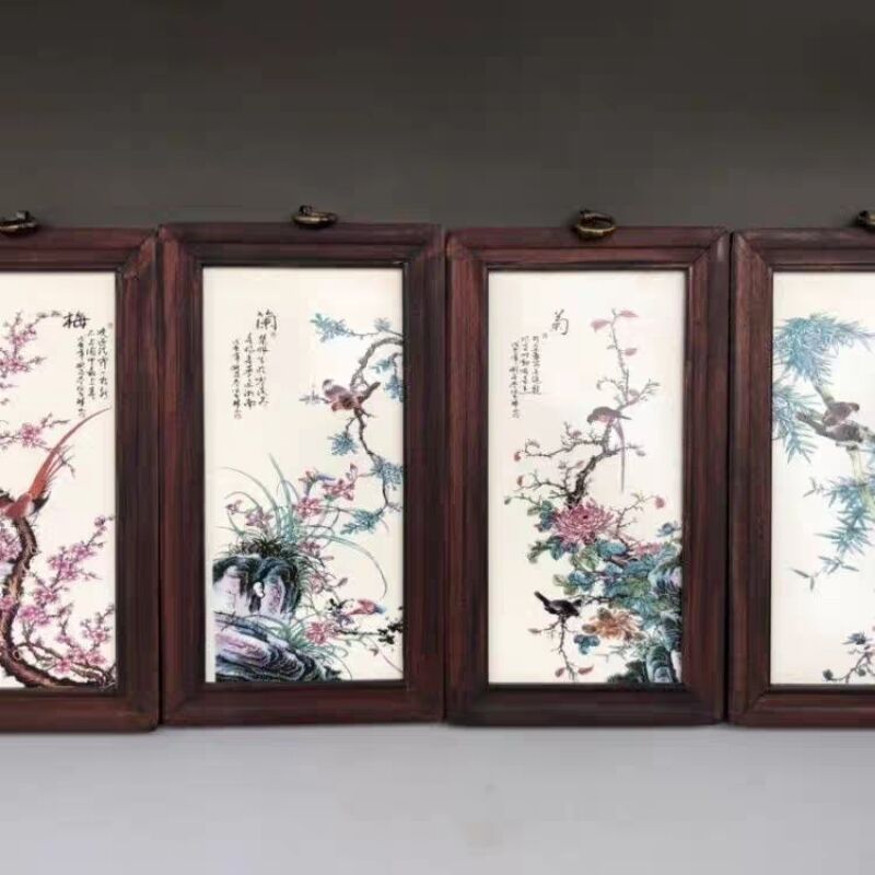 Церamics Jingdezhen живопись фарфоровая тарелка имитация махагони четыре экрана настенная живопись ресторан декоративная живопись слива орхидея бамбук и хризантема