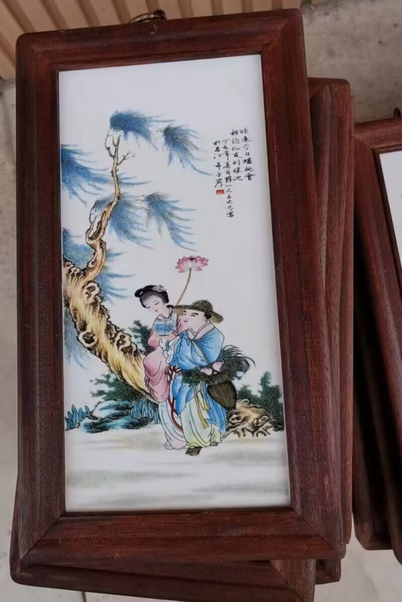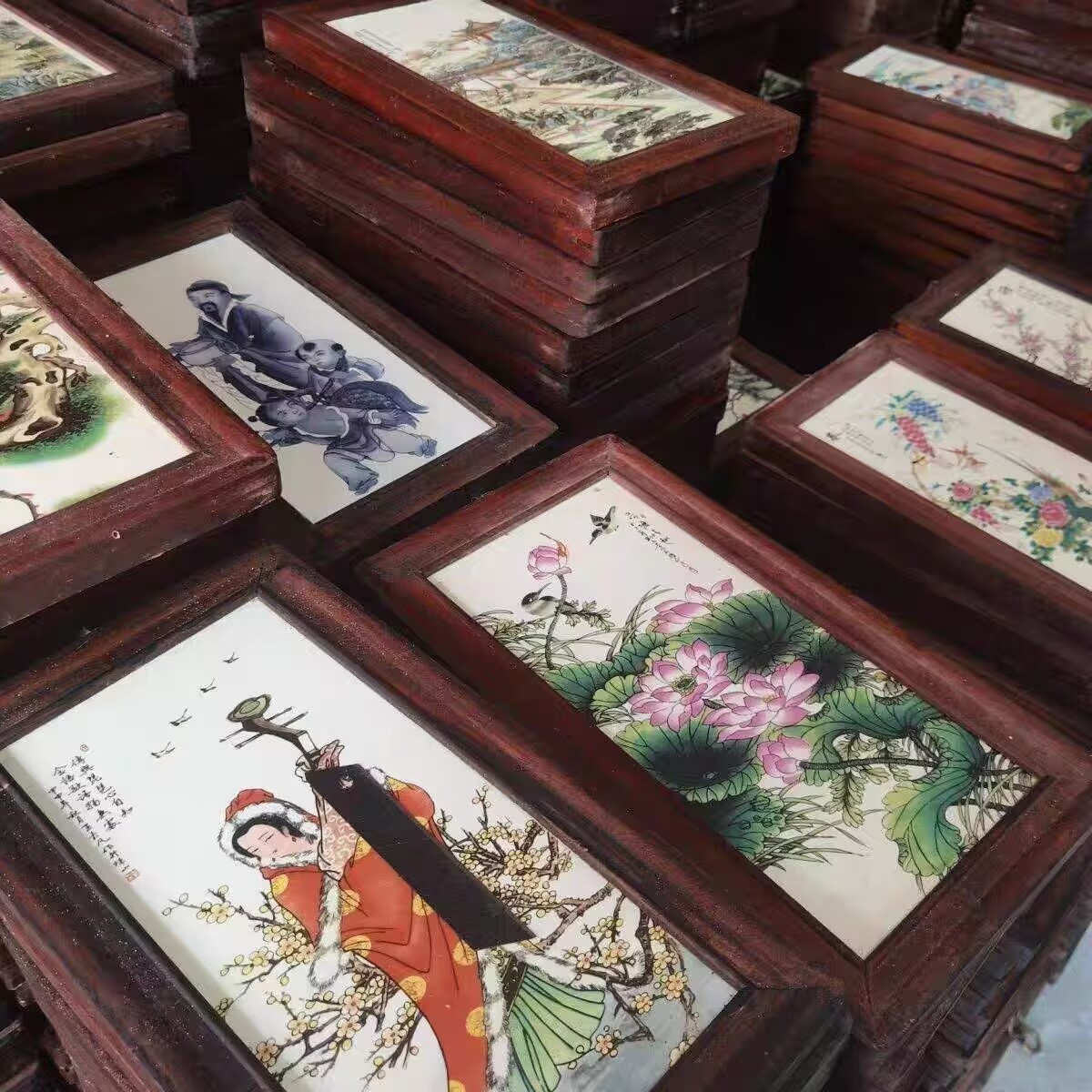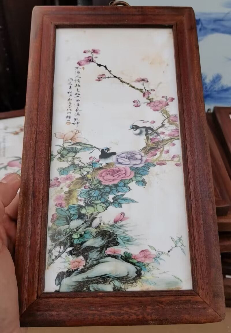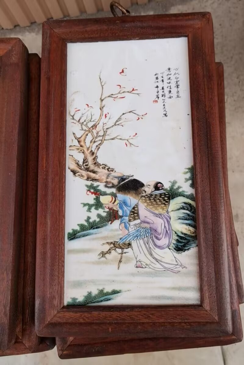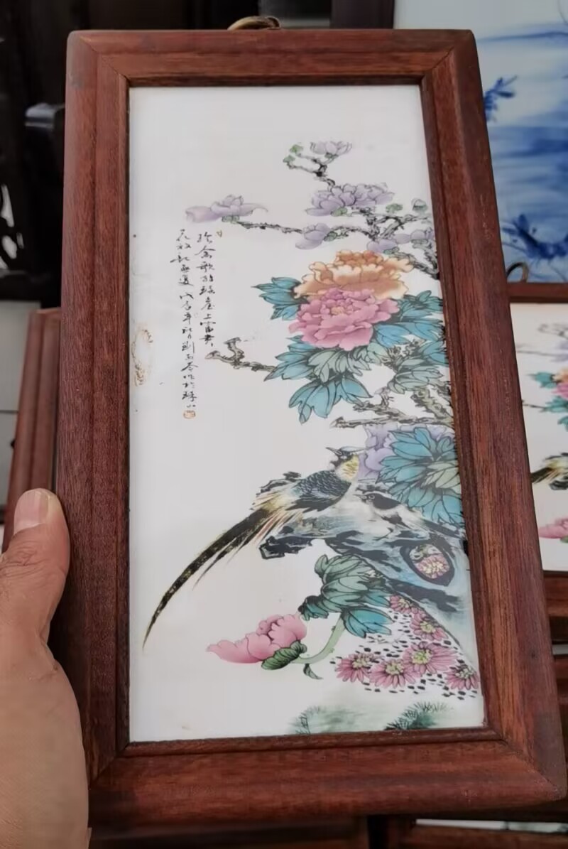 Церamics Jingdezhen живопись фарфоровая тарелка имитация махагони четыре экрана настенная живопись ресторан декоративная живопись слива орхидея бамбук и хризантема