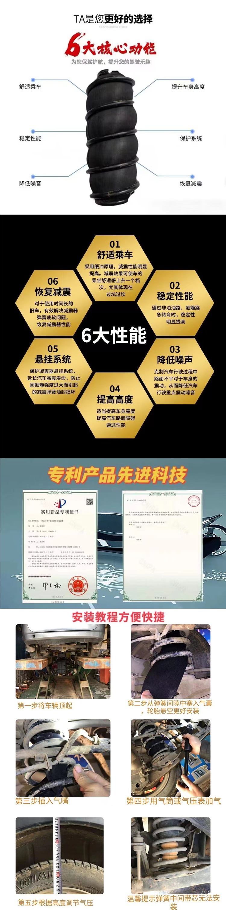 Модифицированный амортизатор автомобильной воздушной подвески, амортизатор, резиновая пружина, воздушная подушка, увеличение высоты шасси для автомобилей SUV
