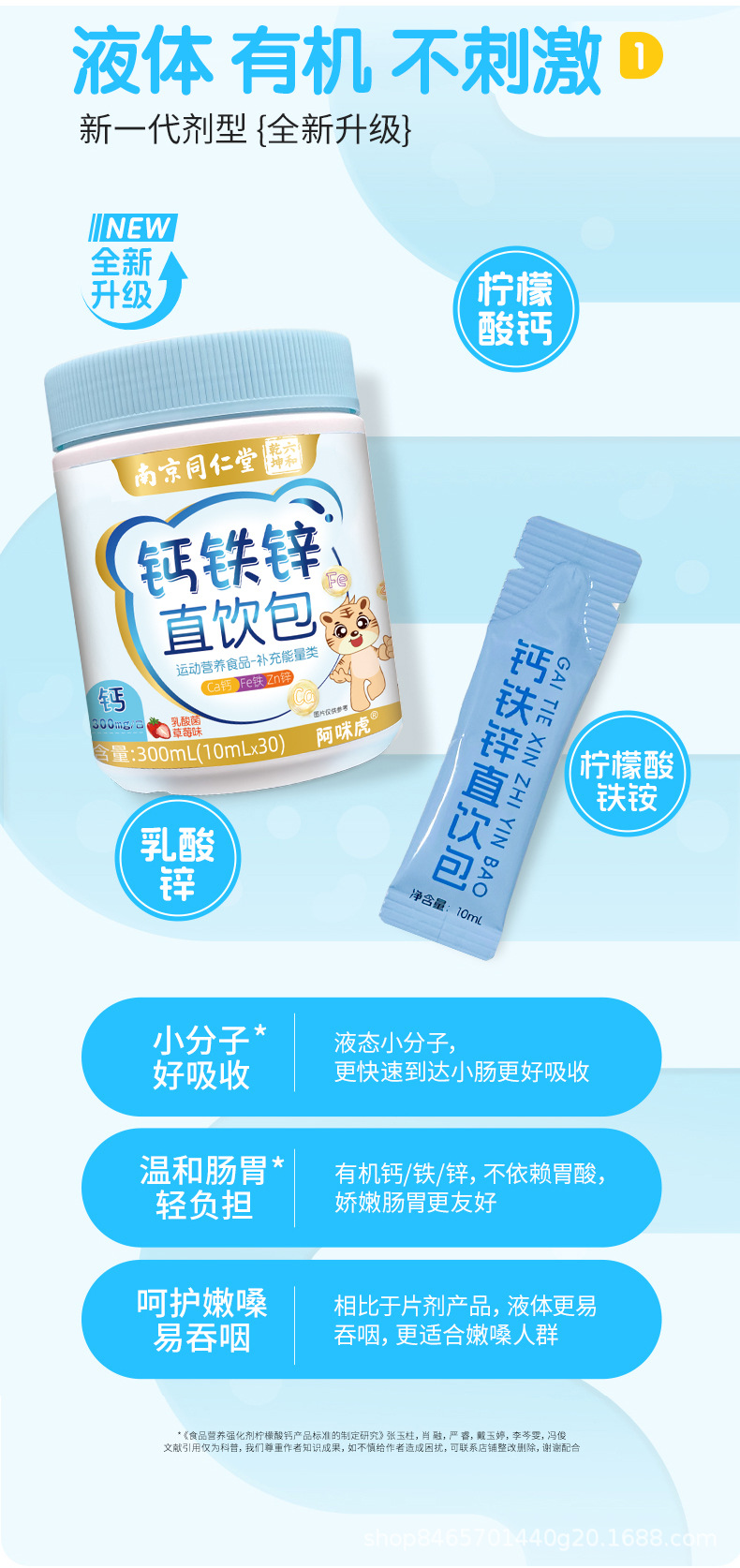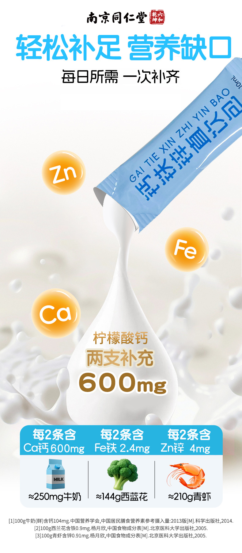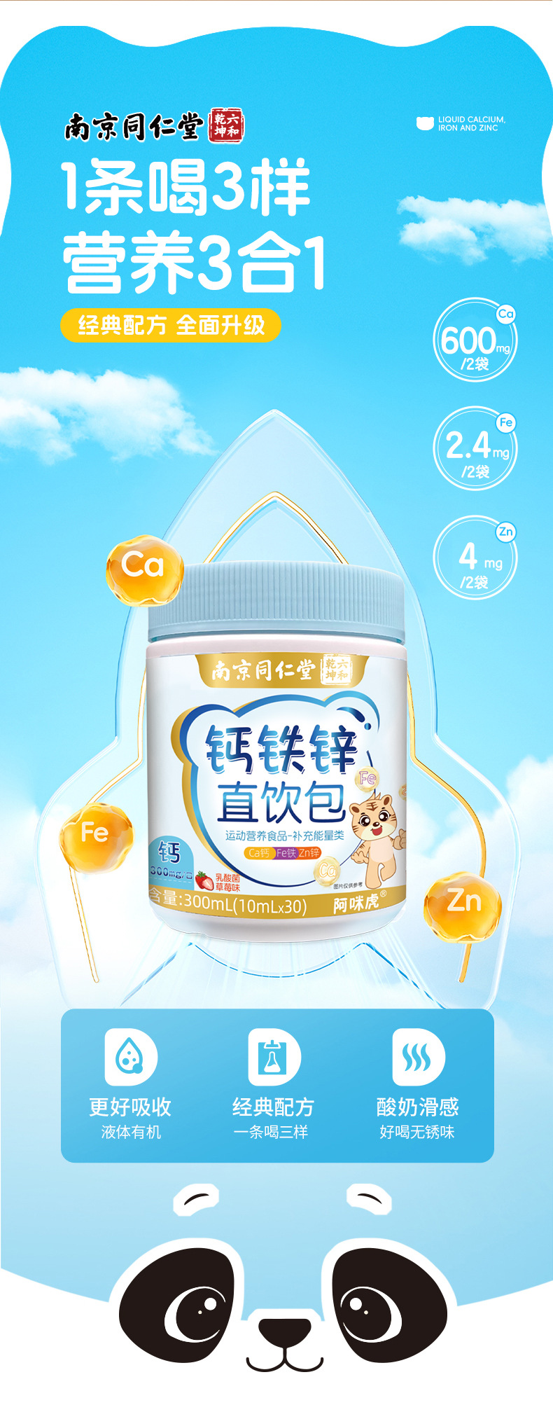 Нанкин Тунжэньтанг кальций железо цинк прямой напиток упаковка способствует усвоению и росту детская жидкость кальций железо цинк