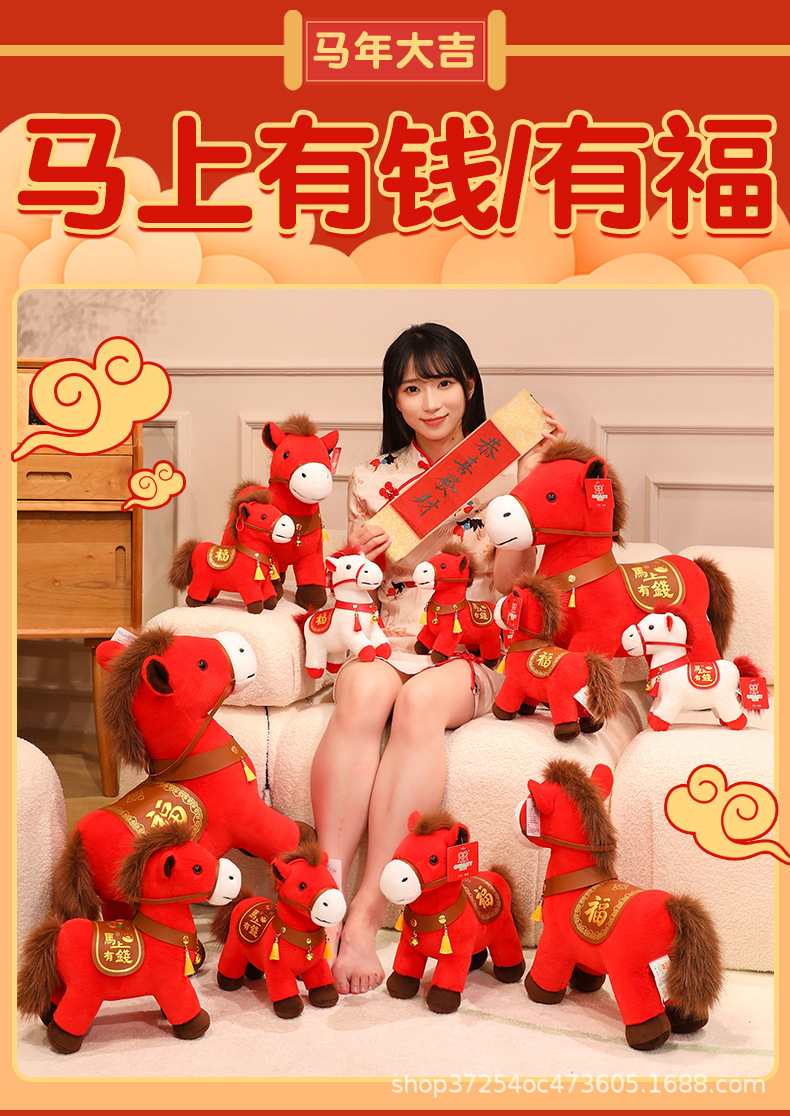 Аутентичная плюшевая игрушка-талисман года Лошади Oumaiqi, мгновенное богатство, кукла китайского зодиака, Новый год