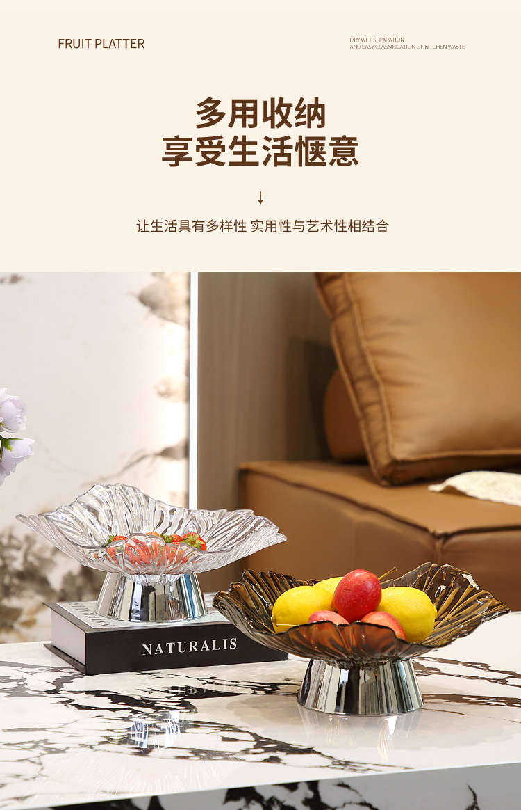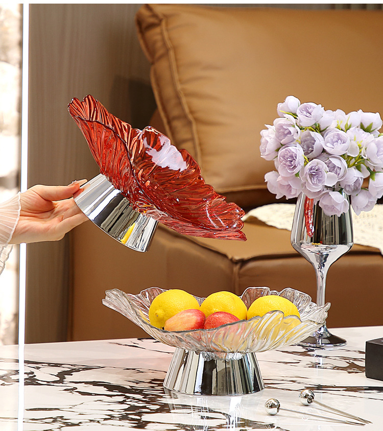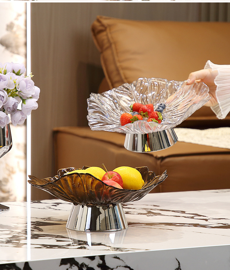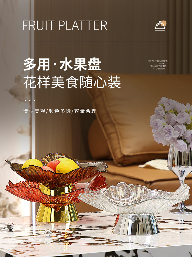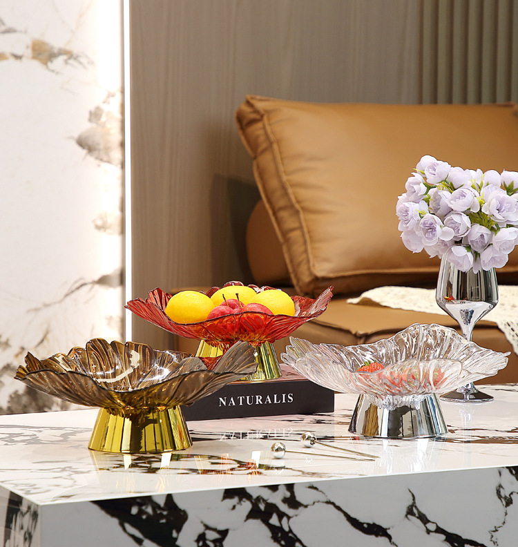 Новая высокая фруктовая тарелка в форме цветка, доступная роскошь для гостиной, стильная фруктовая тарелка, тарелка для закусок и конфет в KTV