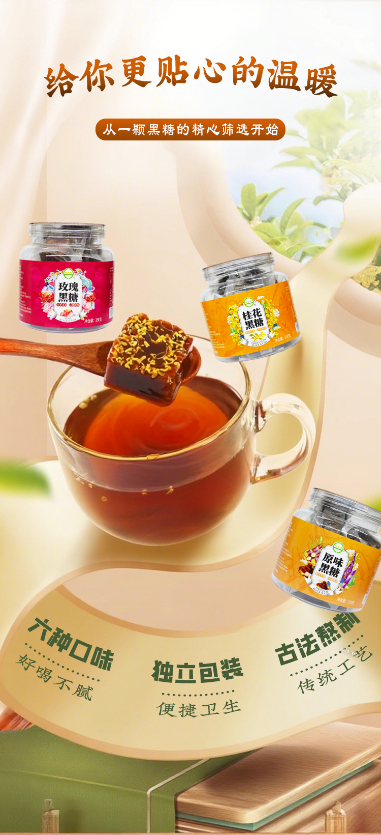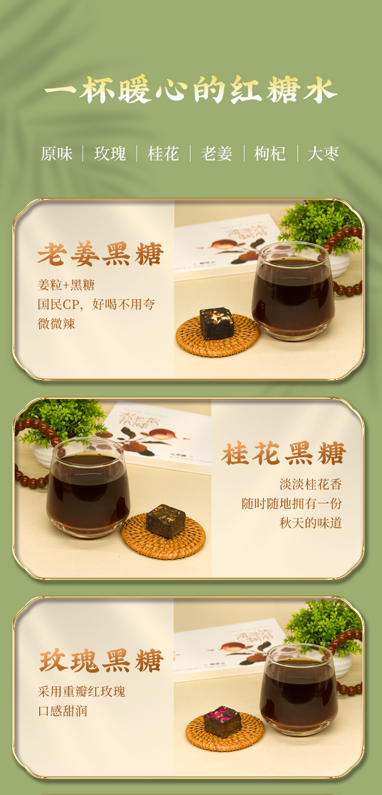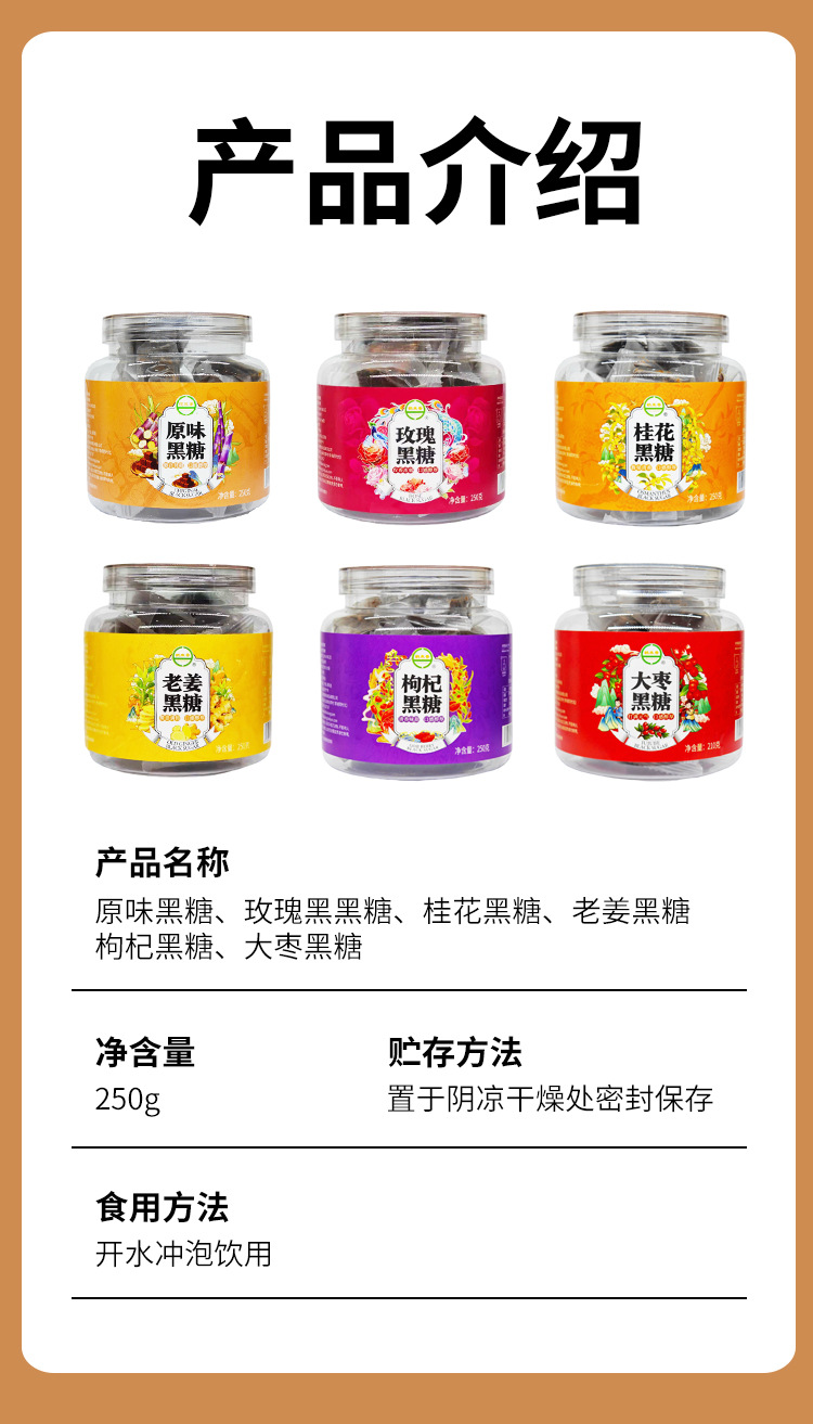 Традиционный имбирный коричневый сахар 250г для послеродового восстановления и менструации с розой, ягодами годжи, оригинальным вкусом, красными финиками и кубиками сахара османтуса