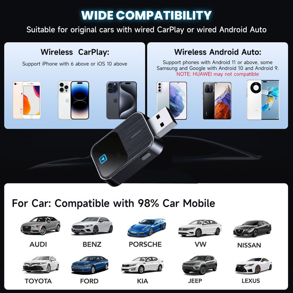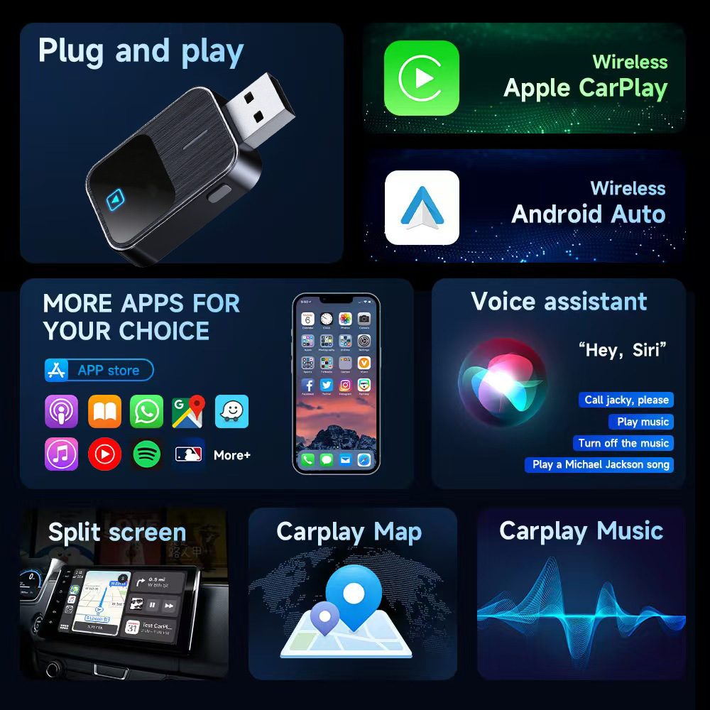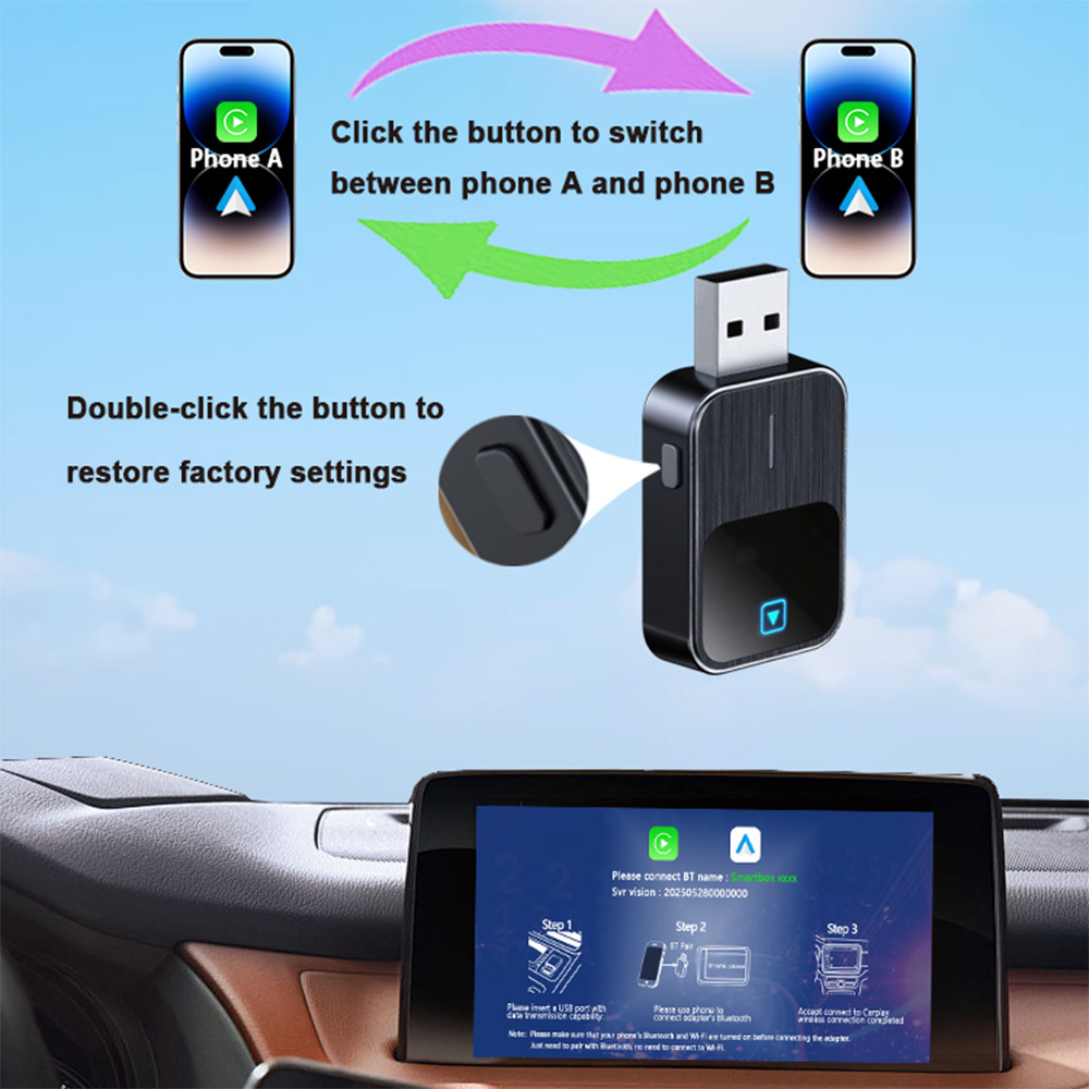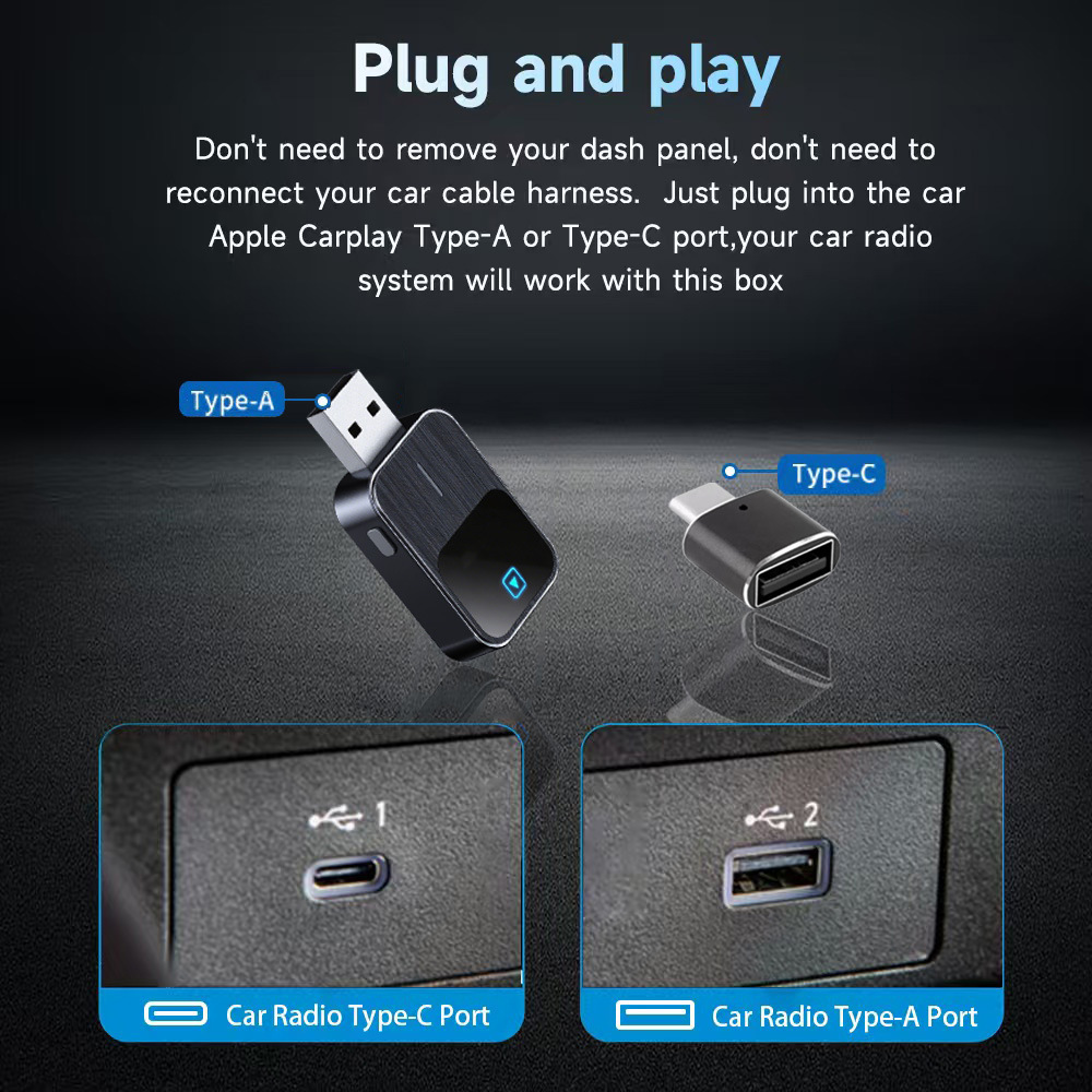 Кросс-граница новый беспроводной Carplay бокс объектив с шелкографией и логотипом