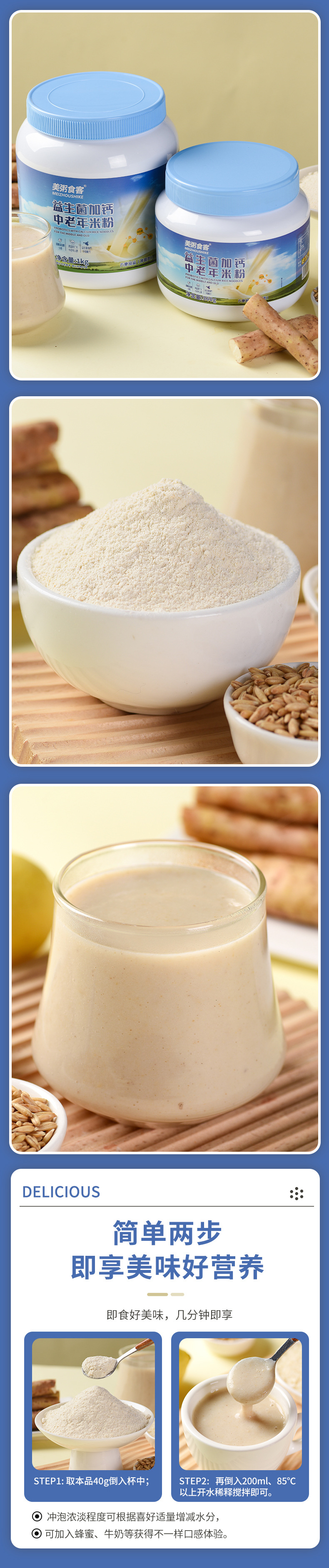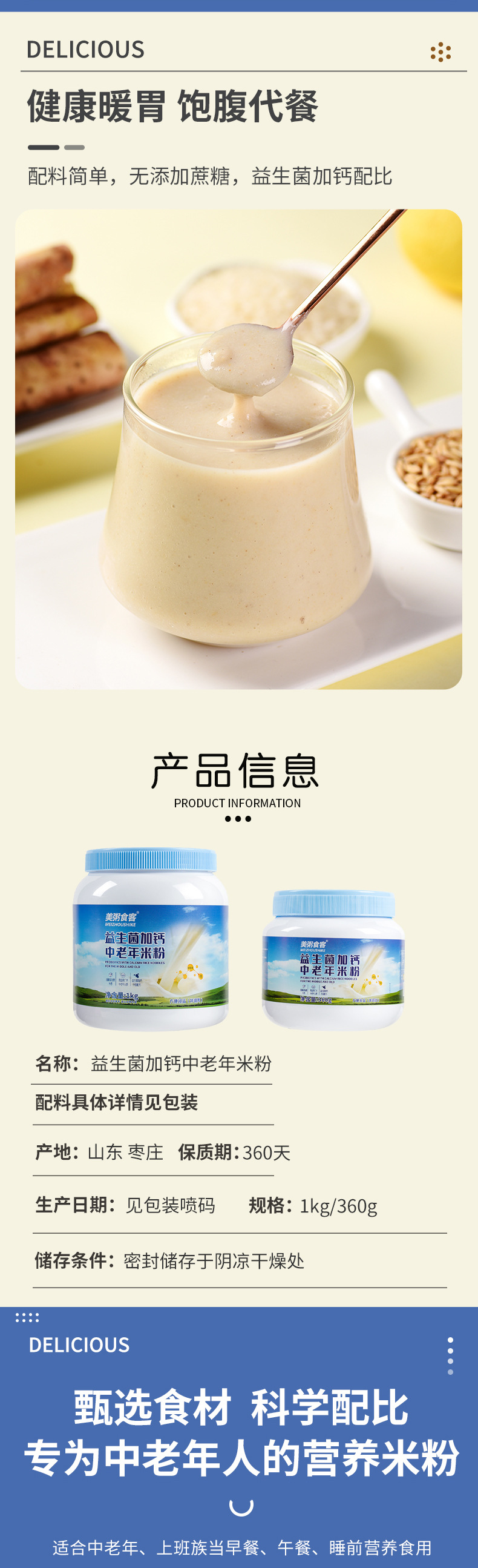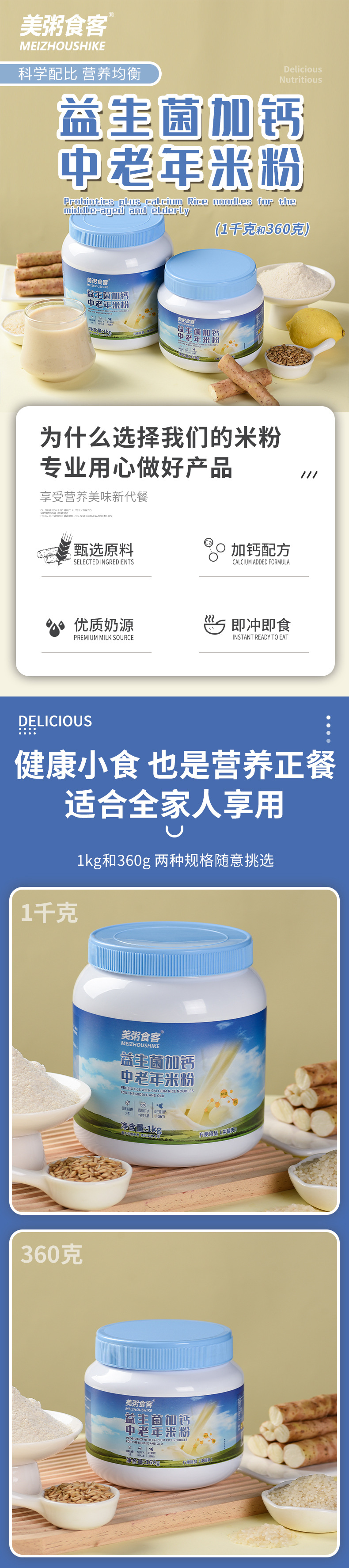 Рисовая мука с пробиотиками и добавленным кальцием для людей среднего возраста и пожилых, 360Г/1КГ, двойная спецификация, бочонок, приглашение стать агентом