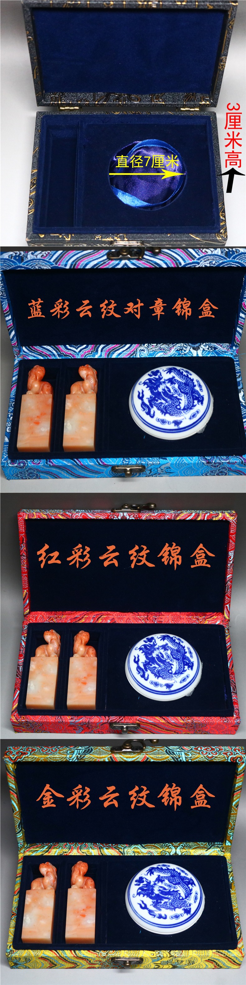 ![]() | Gold cloud pattern single seal ink pad storage box-can hold 3x3x 12cm | ¥39.85 / ≈ 480 ₽ | 499 | 6097145118861 | |