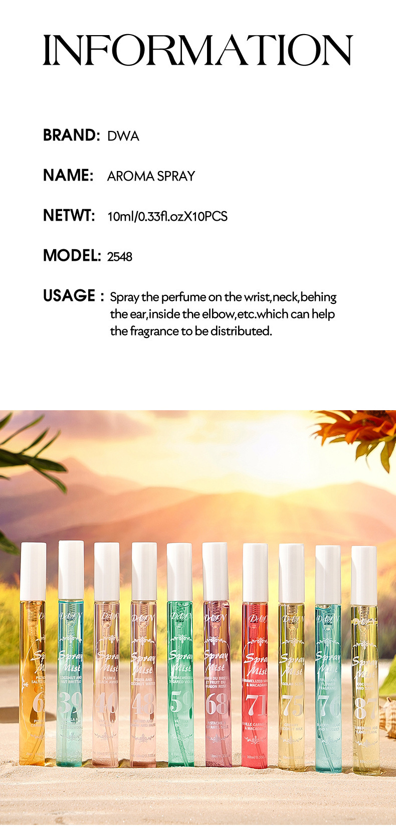 Парфюм безалкогольный 10 мл для волос и тела с длительным ароматом