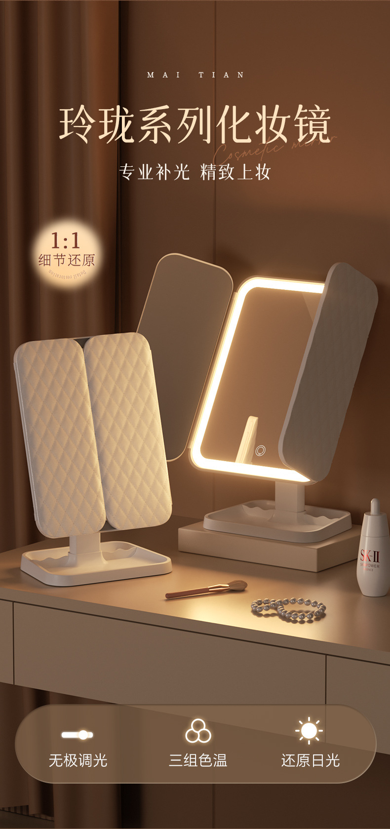 Настольное складное зеркало для макияжа с подсветкой, увеличительное зеркало для студентов в общежитии