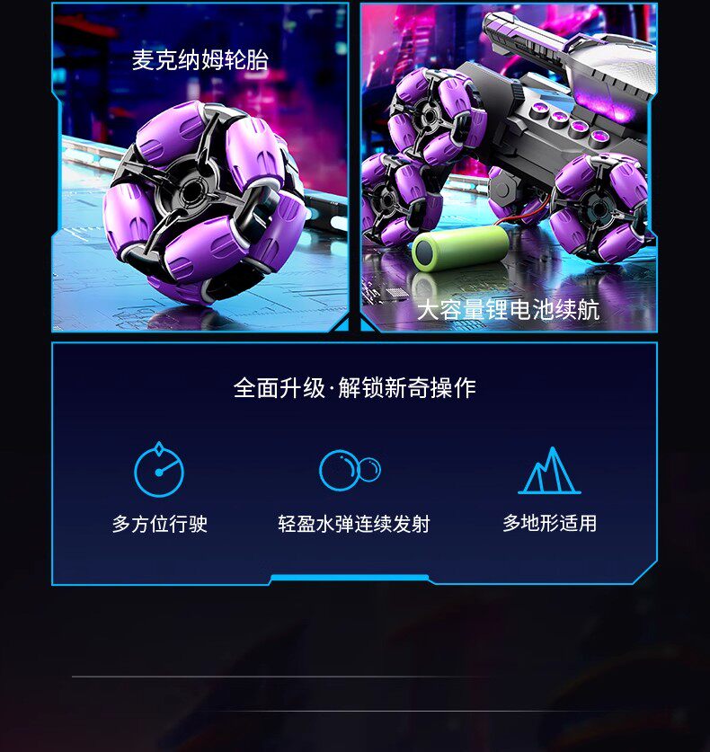 ![]() | 391 six-wheel stunt water bomb tank vehicle [upgraded gesture handle dual remote control] purple | [standard configuration for single battery] battery life is about 35 minutes | ¥60.8 / ≈ 732 ₽ | 910 | 6105315059361 | |