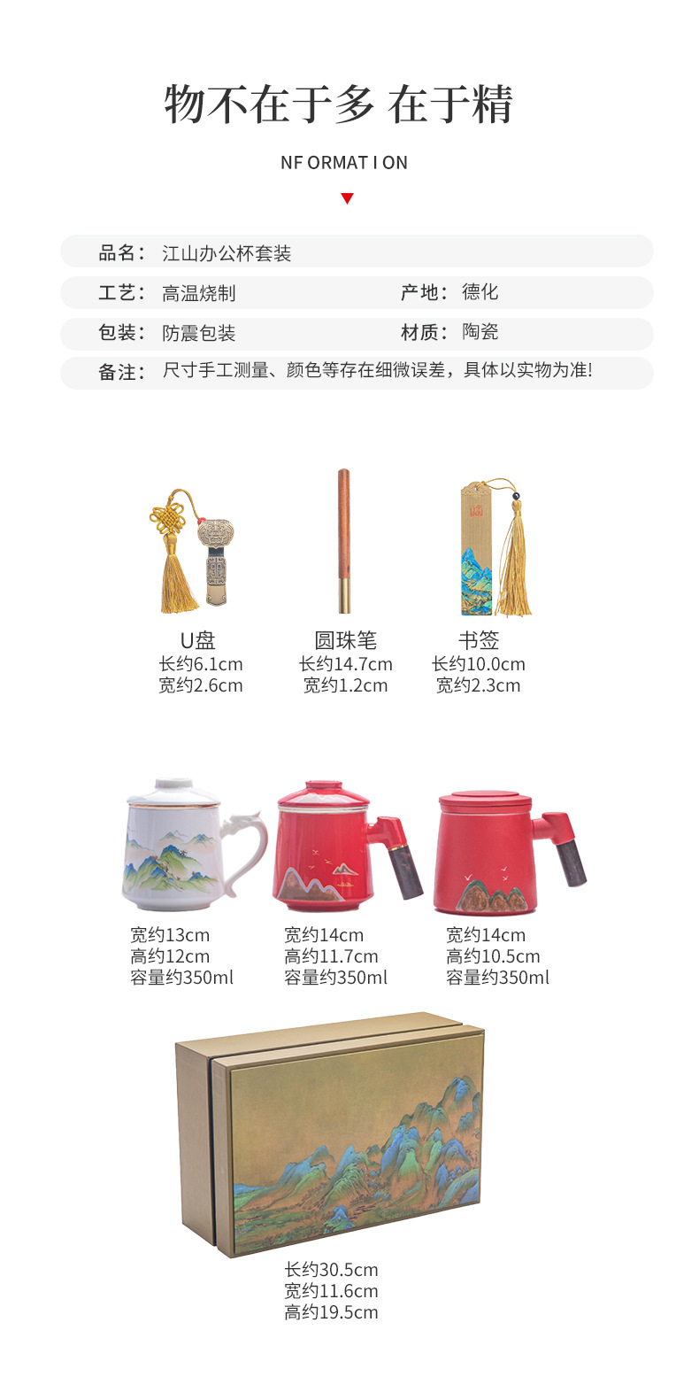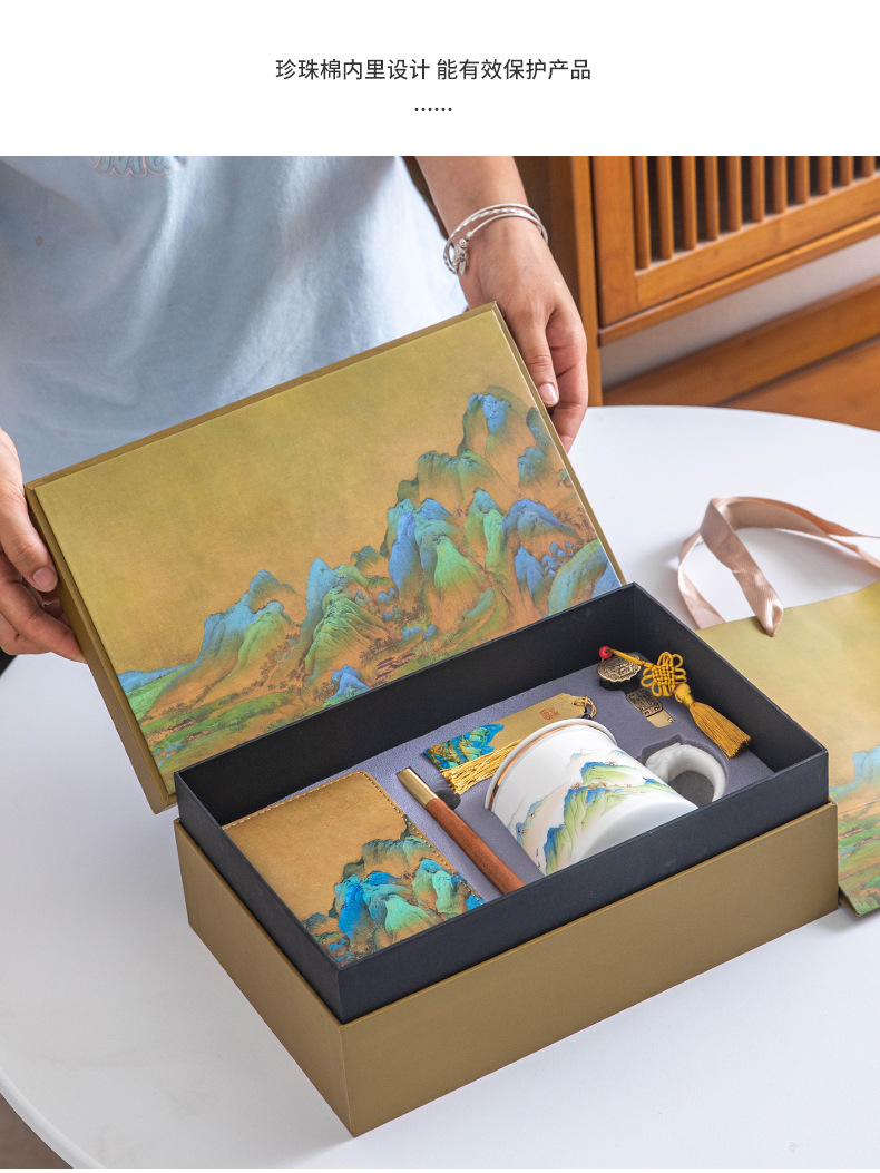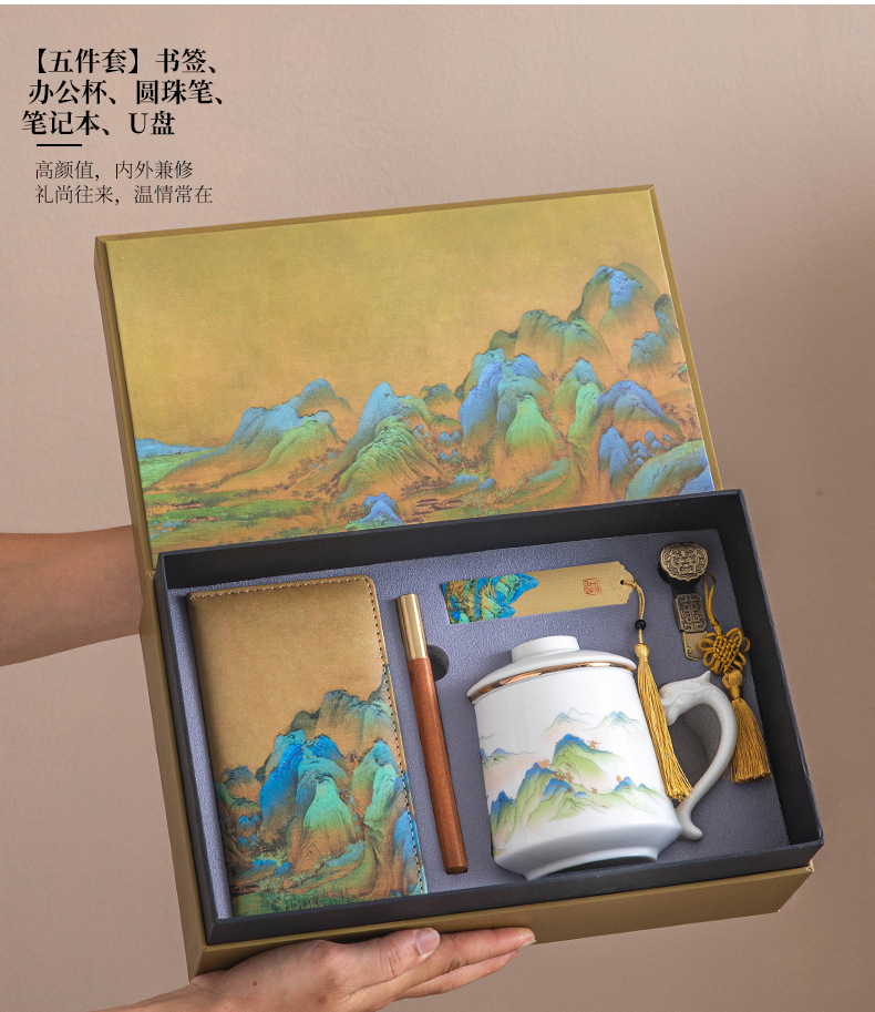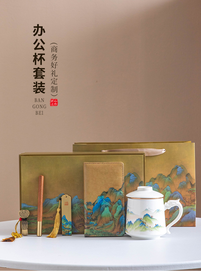 Офисная кружка Qianli Jiangshan два, три, четыре и пять предметов бизнес-подарочный набор сувенир к празднику середины осени и национальному дню