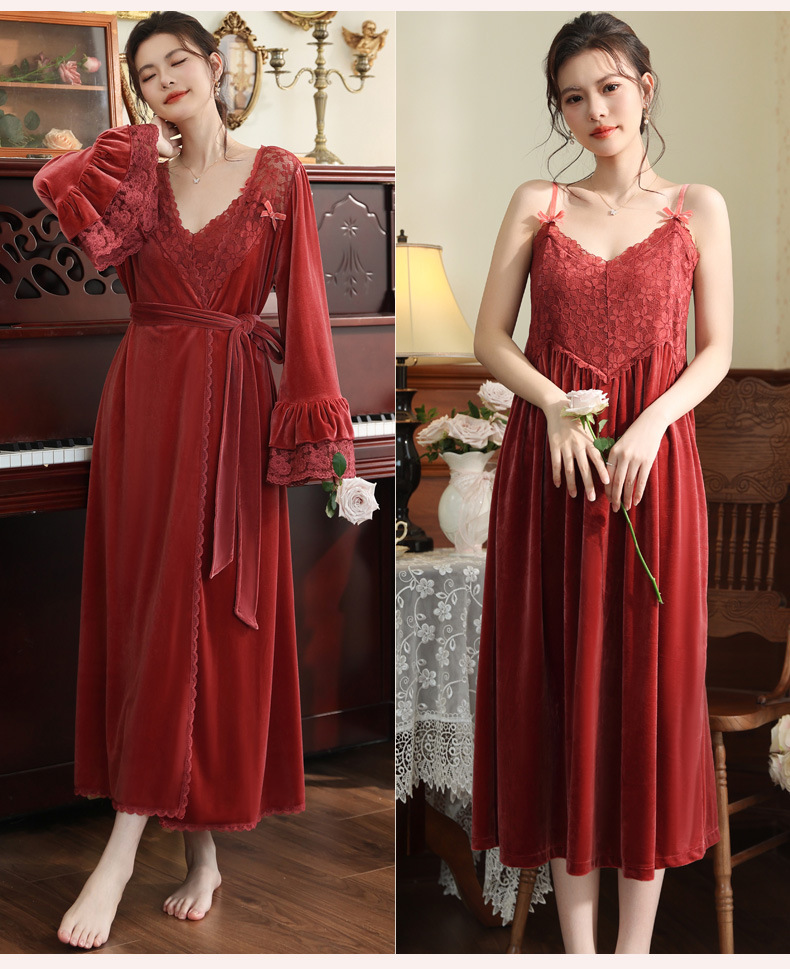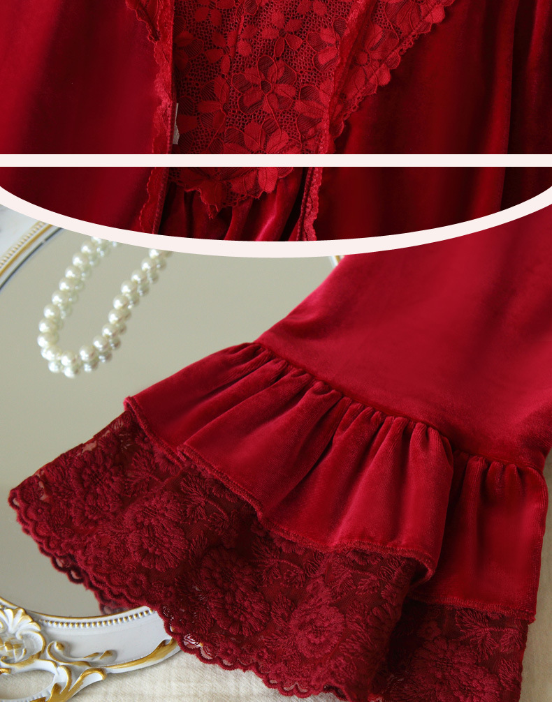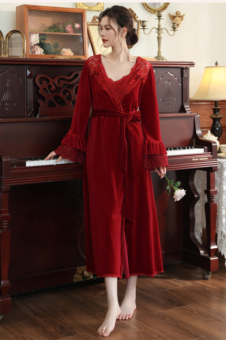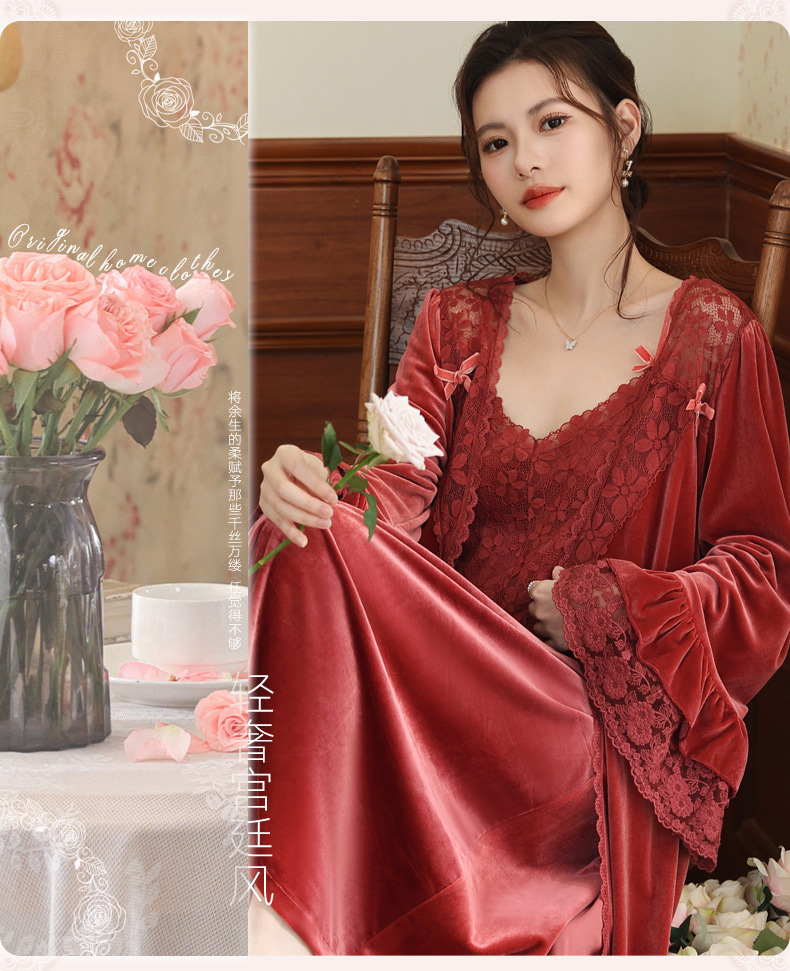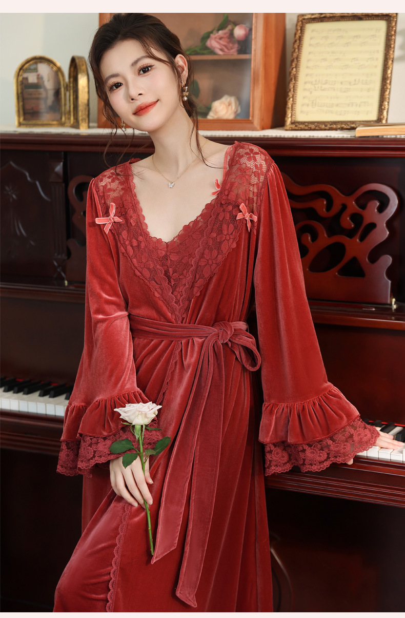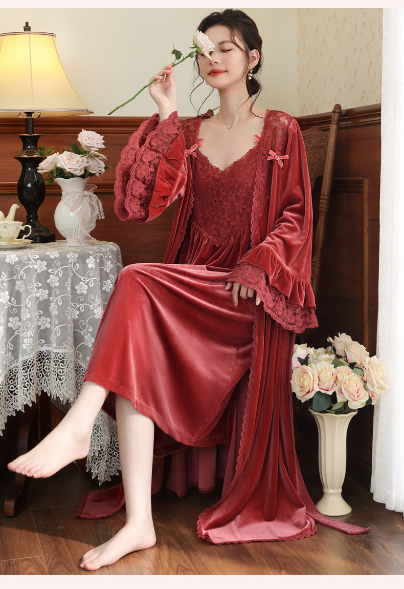 Ночная сорочка с длинным рукавом для женщин, золотая бархатная ночная сорочка, свадебный халат, французские теплые пижамы, можно носить на улице, домашний комплект одежды, осень и зима