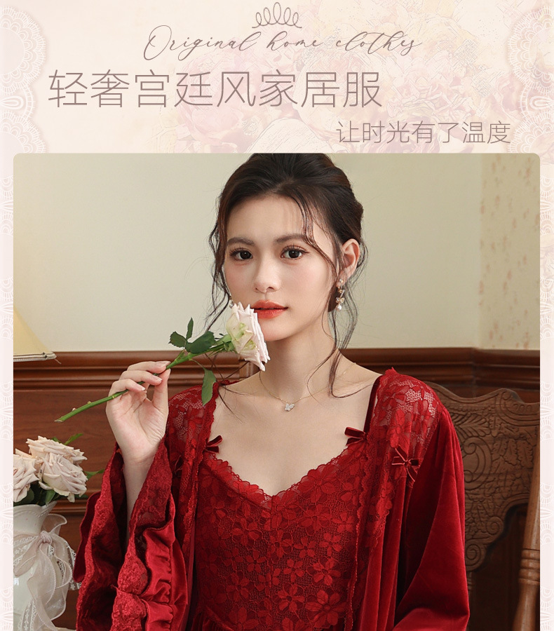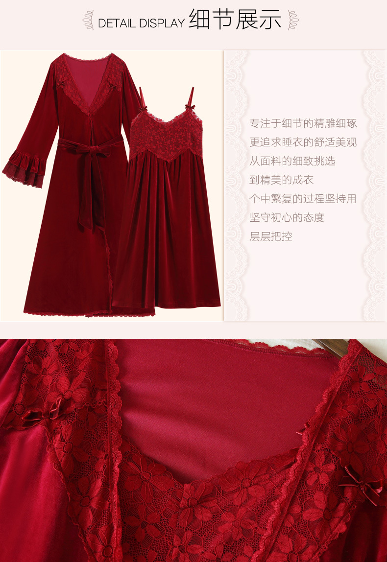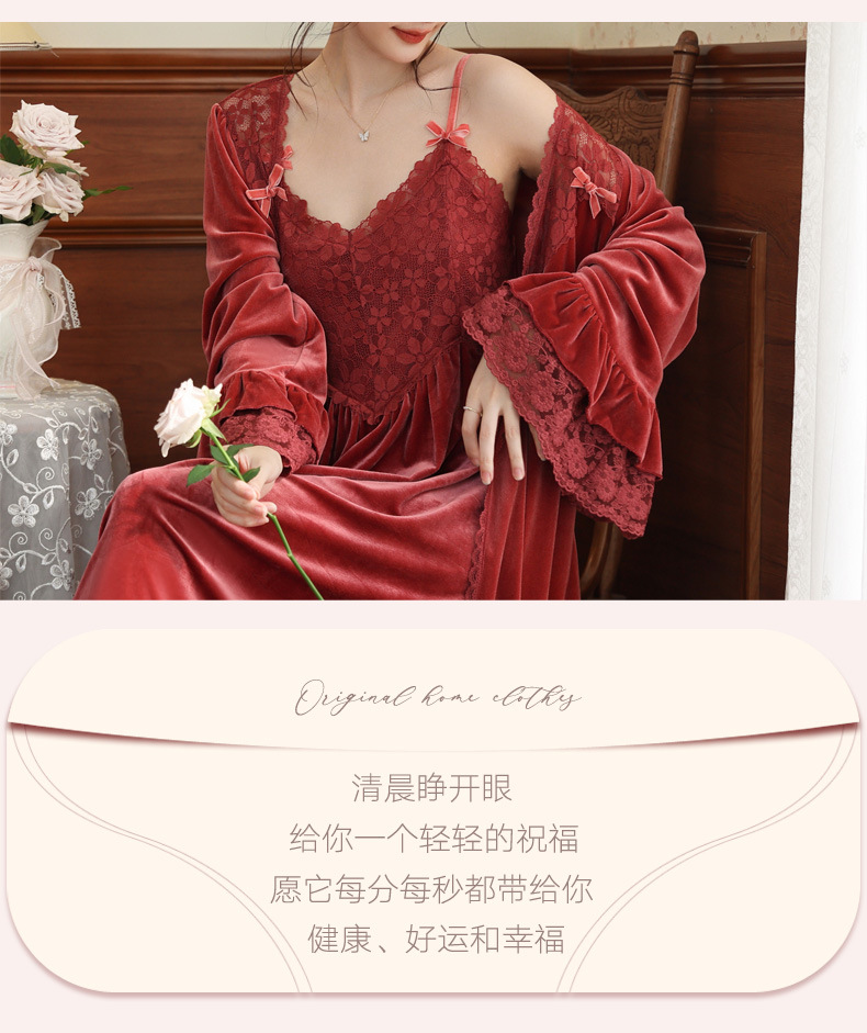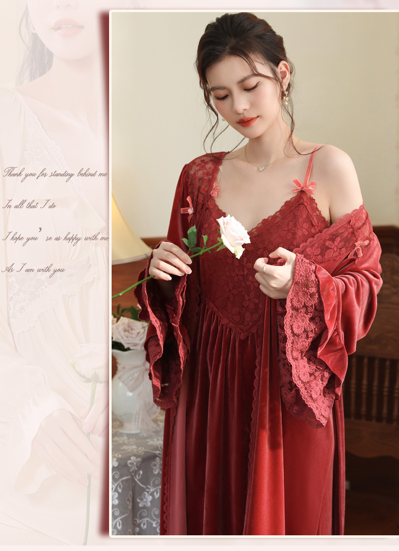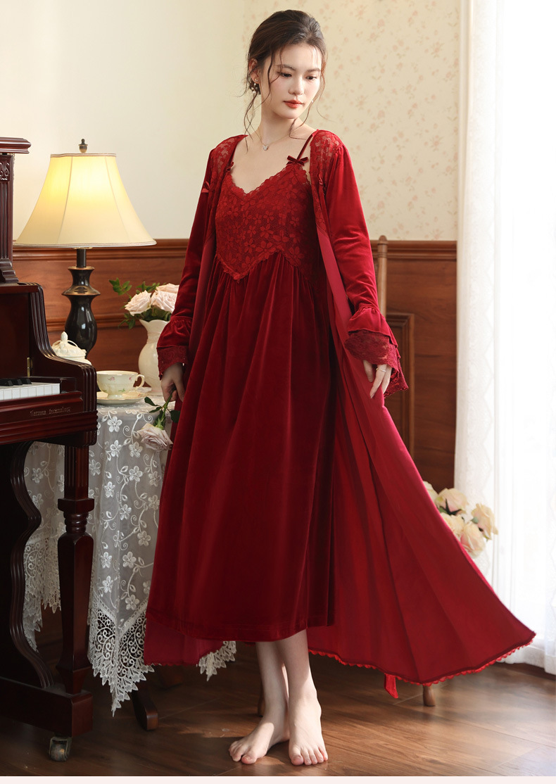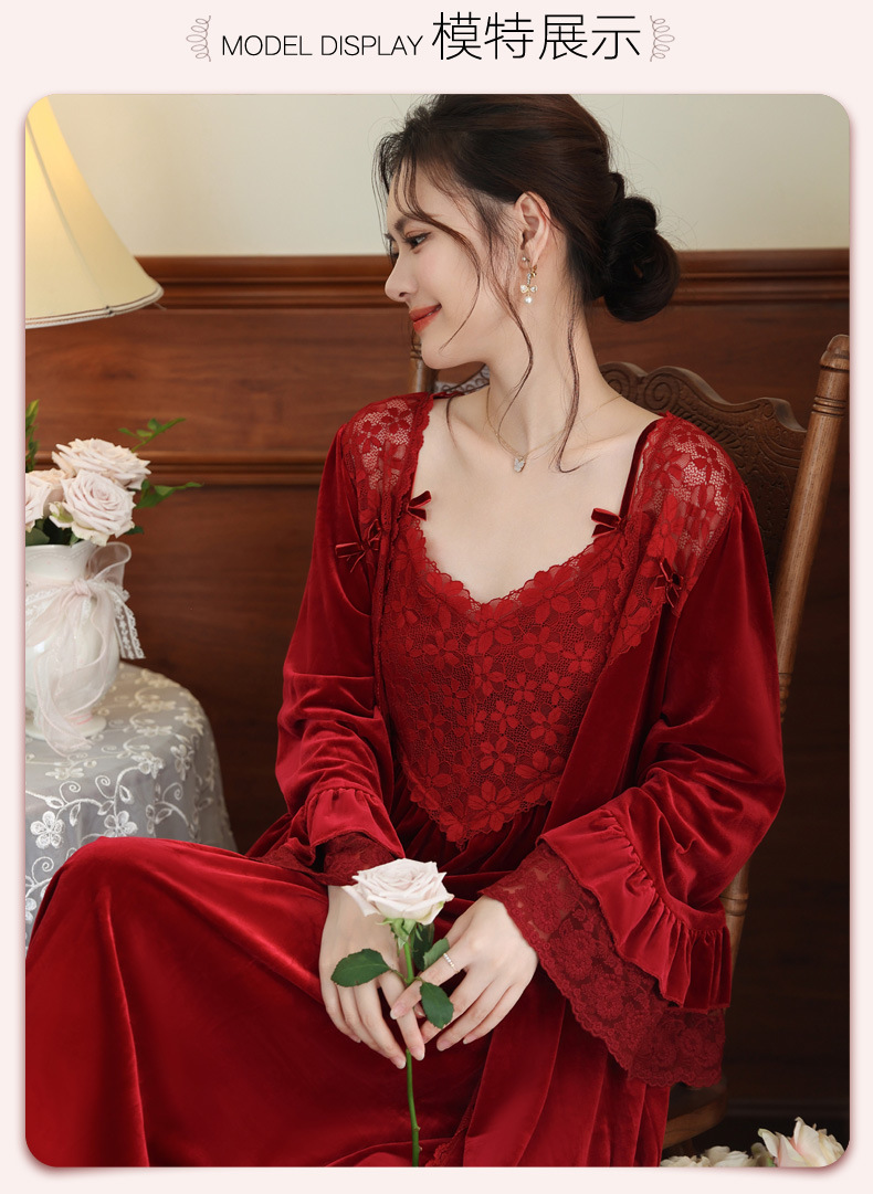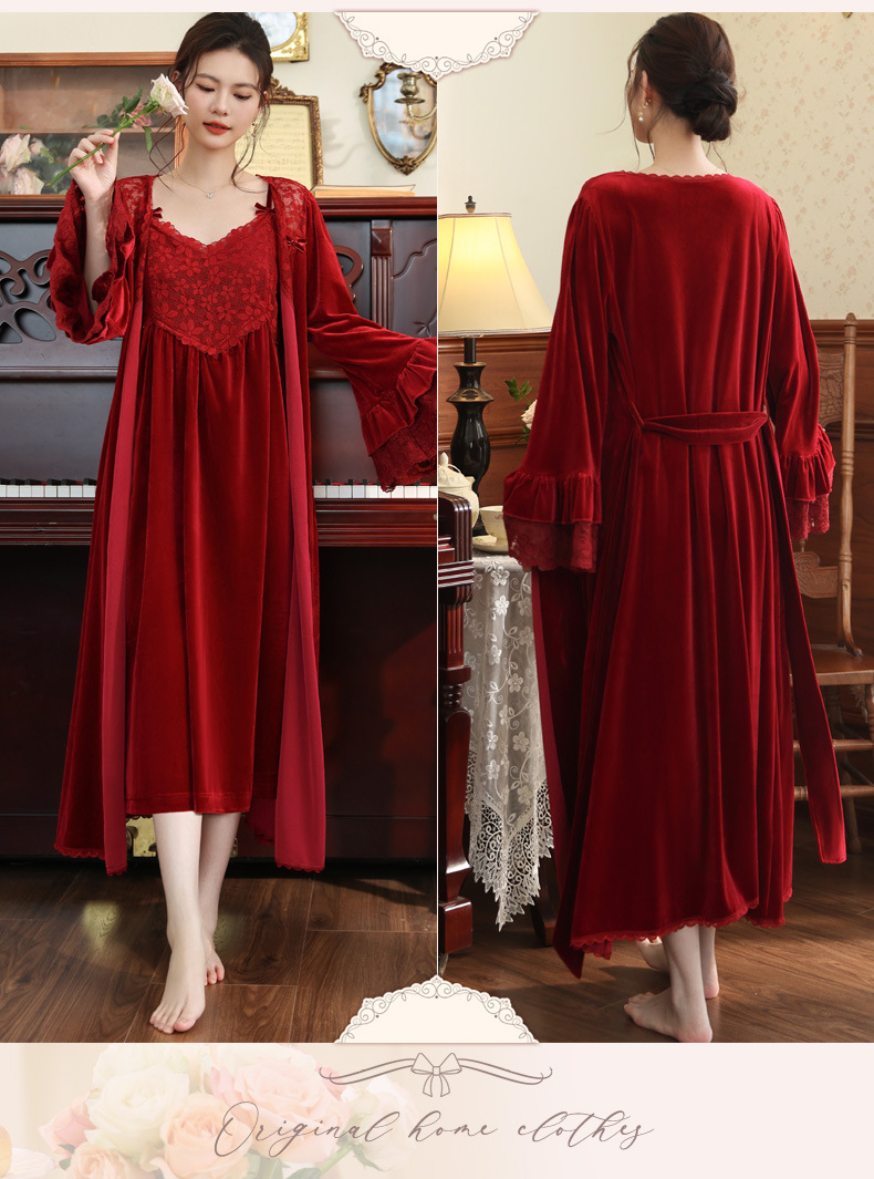 Ночная сорочка с длинным рукавом для женщин, золотая бархатная ночная сорочка, свадебный халат, французские теплые пижамы, можно носить на улице, домашний комплект одежды, осень и зима