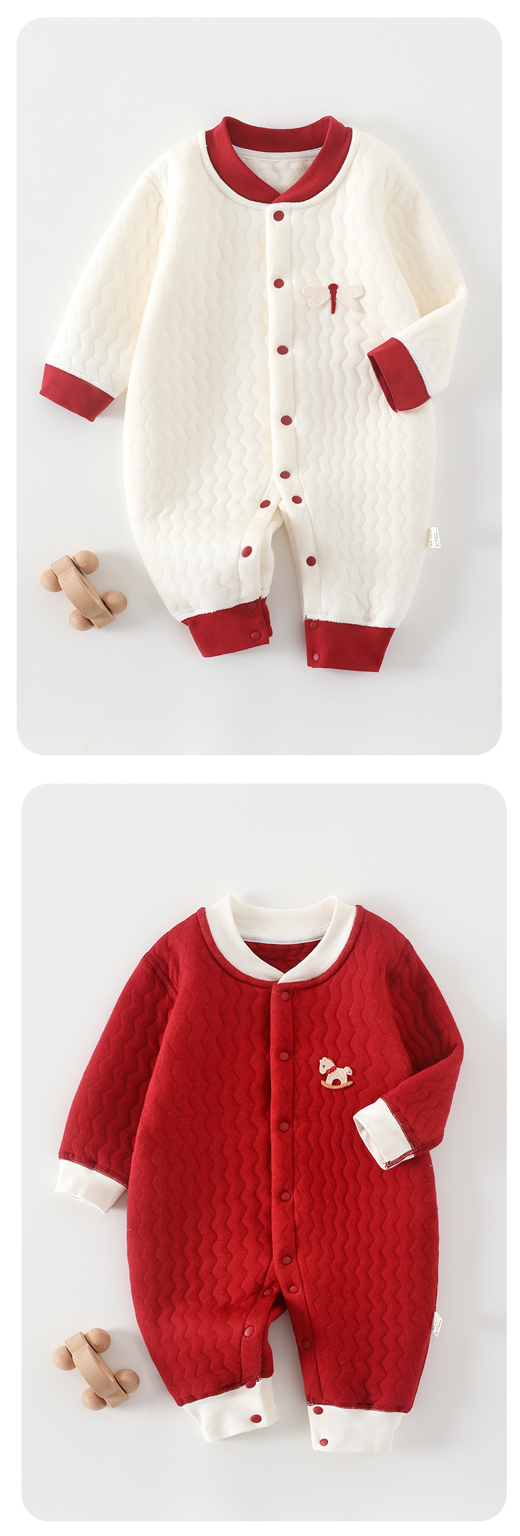 Комбинезон для младенцев осень и зима стеганая термоодежда 100% хлопок утолщенный для ползания зимняя красная одежда для новогодних поздравлений