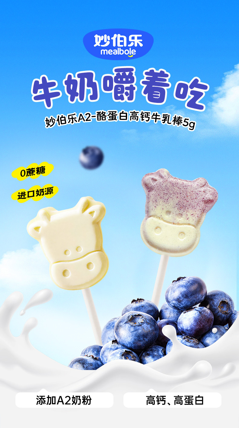 Miaobole A2-кальций молочный батончик 5г оригинальный вкус черники с лютеином и DHA