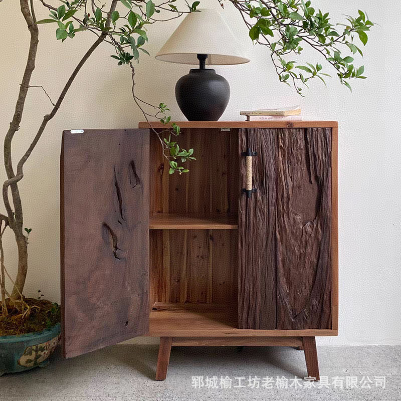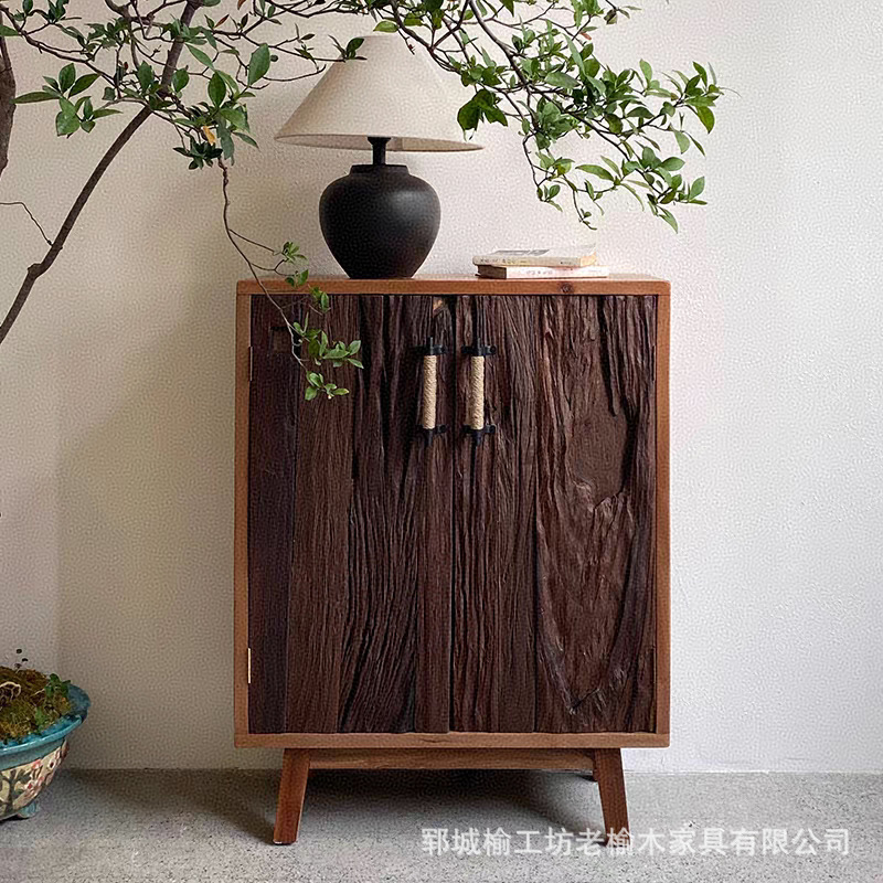 Шкаф для входа в стиле Wabi-Sabi, массивное дерево, старый вяз, винтажный буфет, шкаф для хранения чая