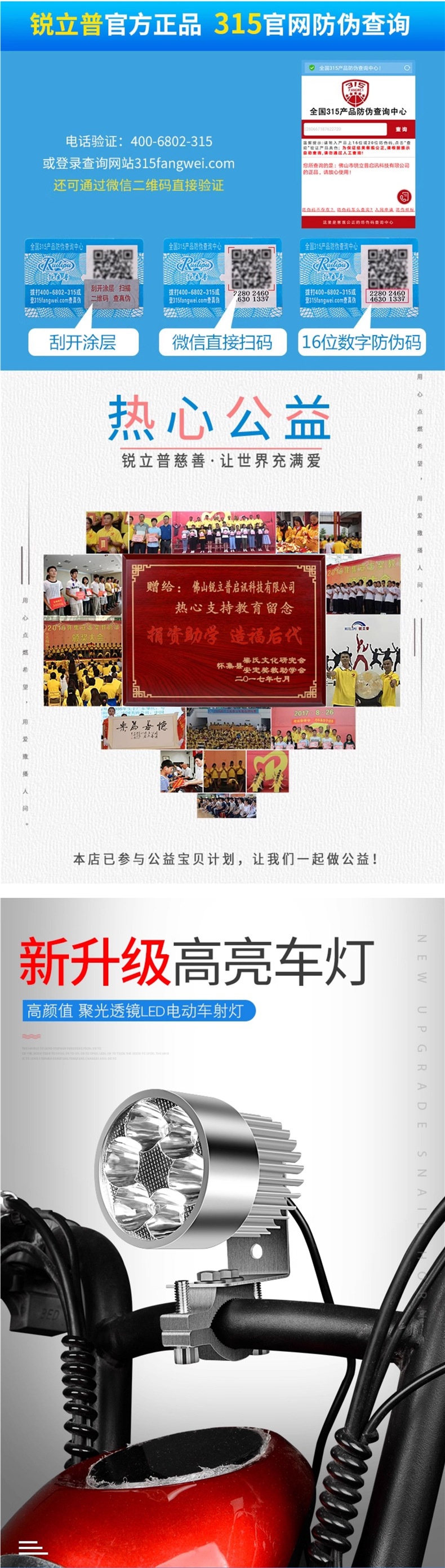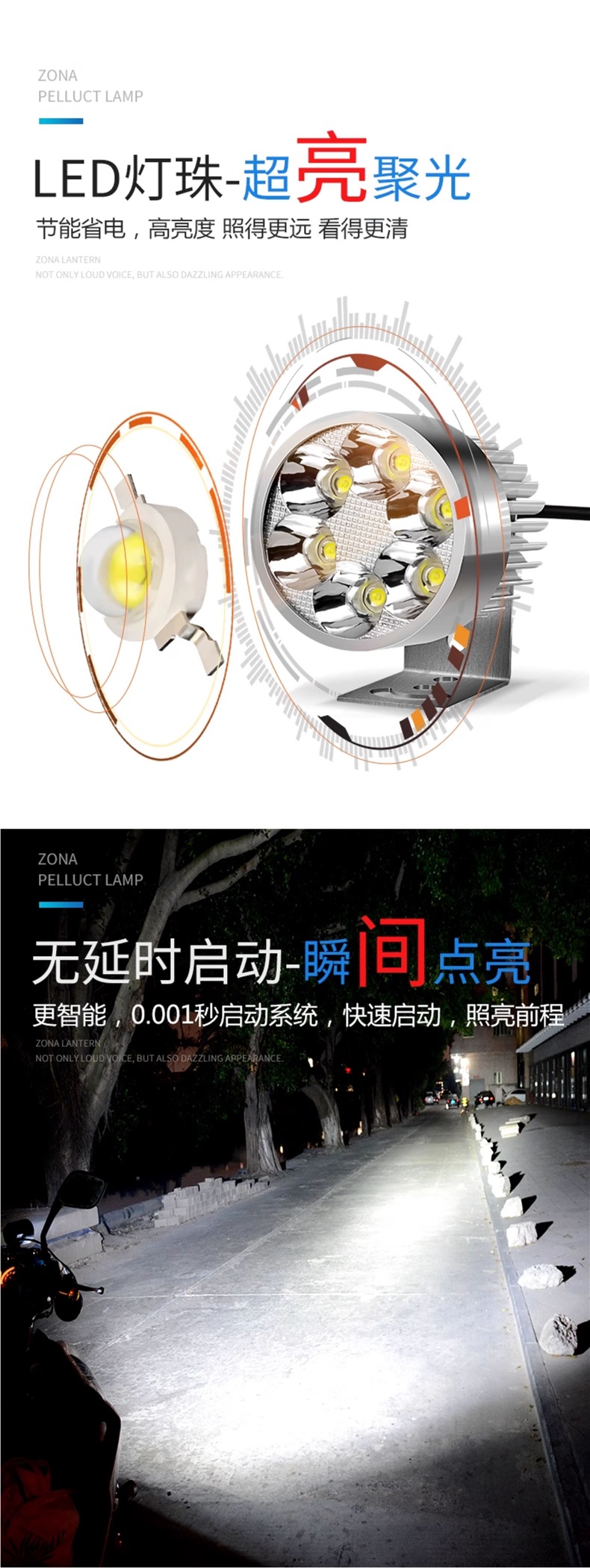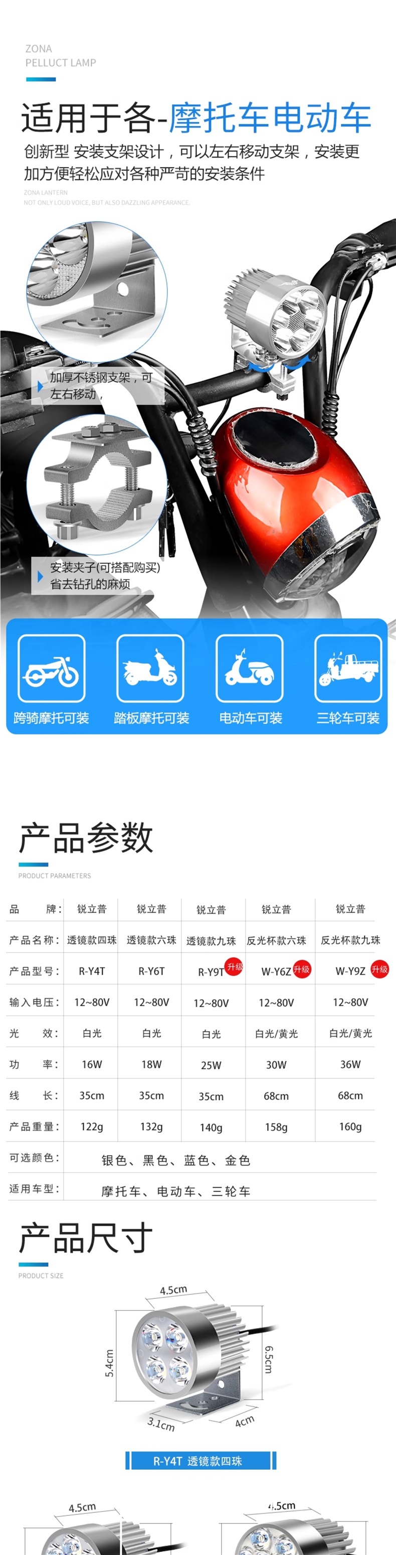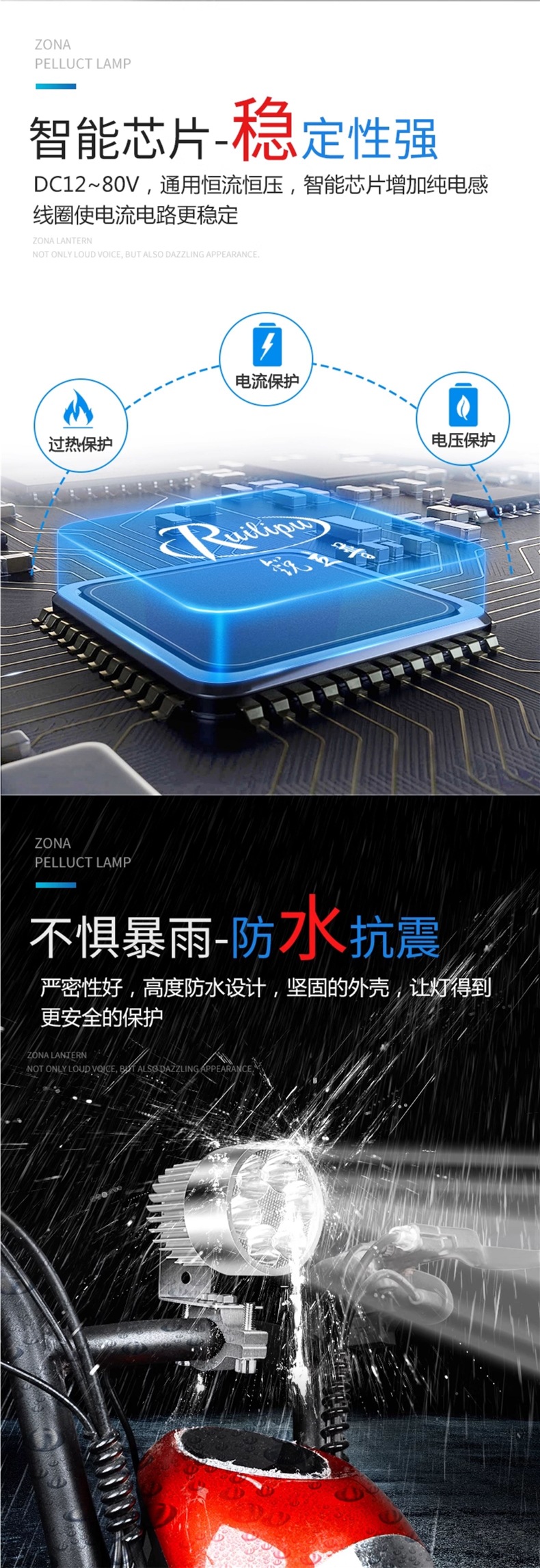 Фара для мотоцикла Ruili Pu, электрическое транспортное средство, лампа, модифицированный реверсивный светодиодный прожектор, супер яркий мощный внешний дополнительный свет