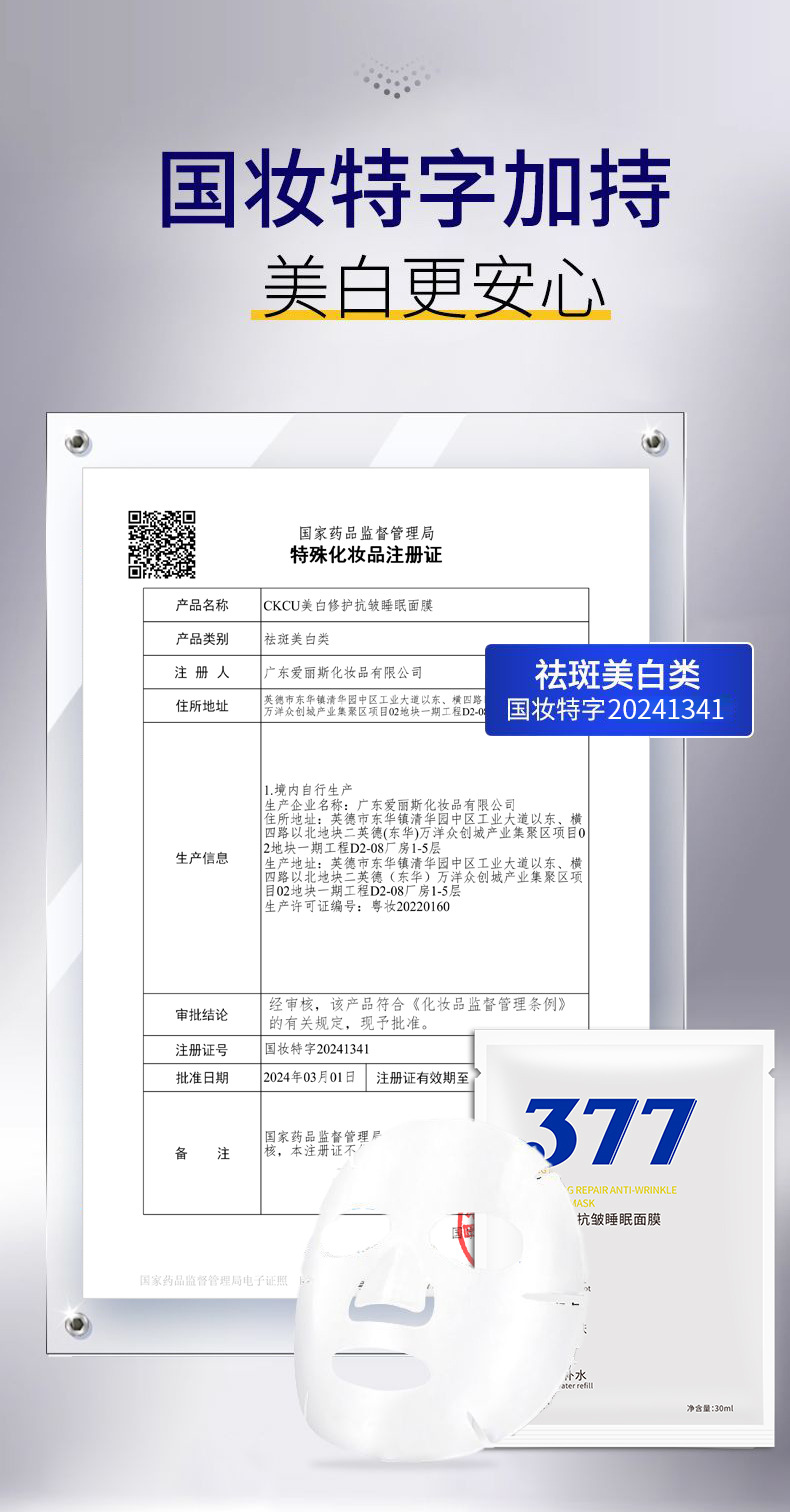 Специальное название косметического продукта Ckcu whitening repair anti-wrinkle sleeping mask