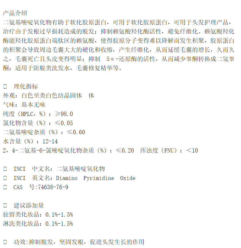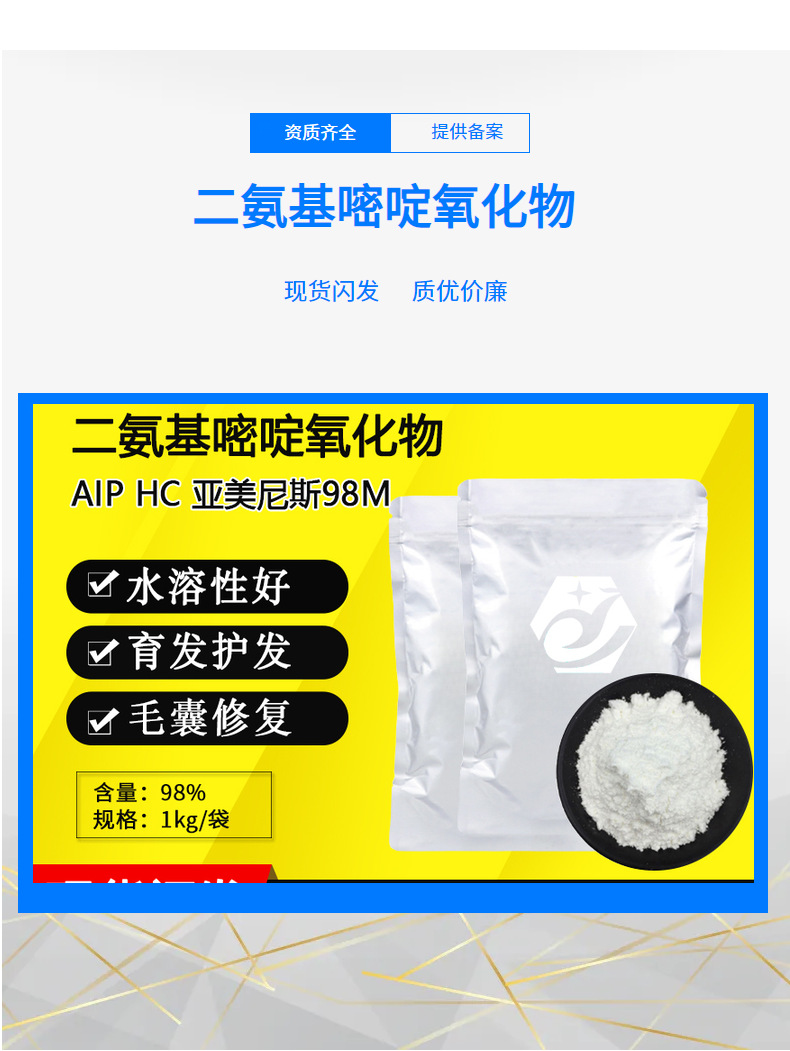 Аменис 98% Диамидопиримидин Оксид Водорастворимый Косметический класс Сырье для волос 74638-76-9