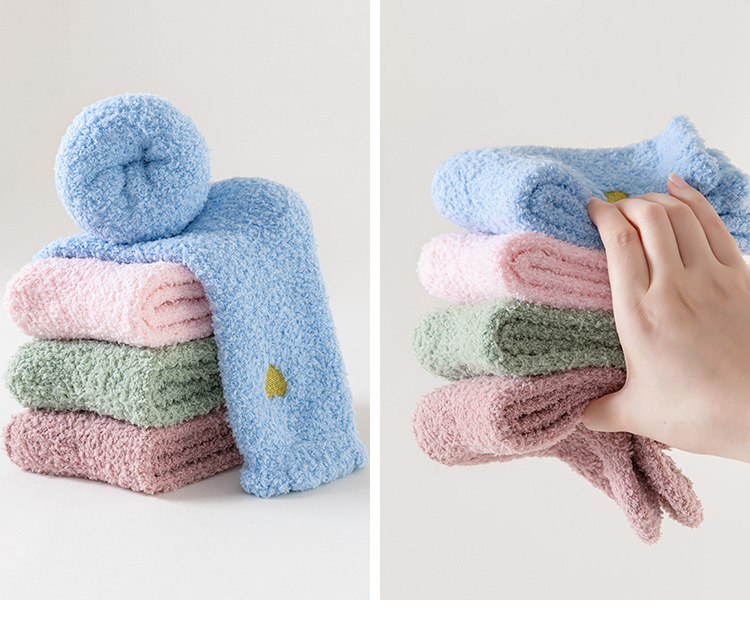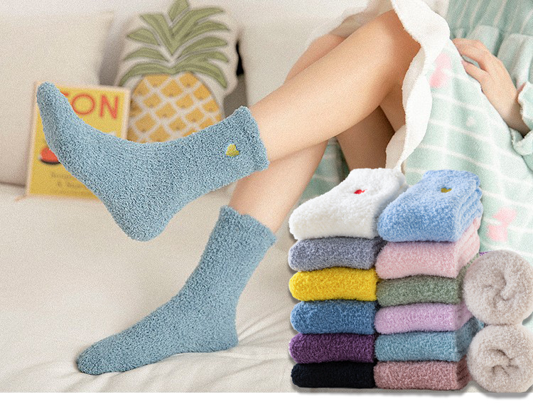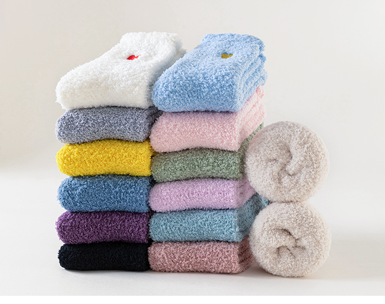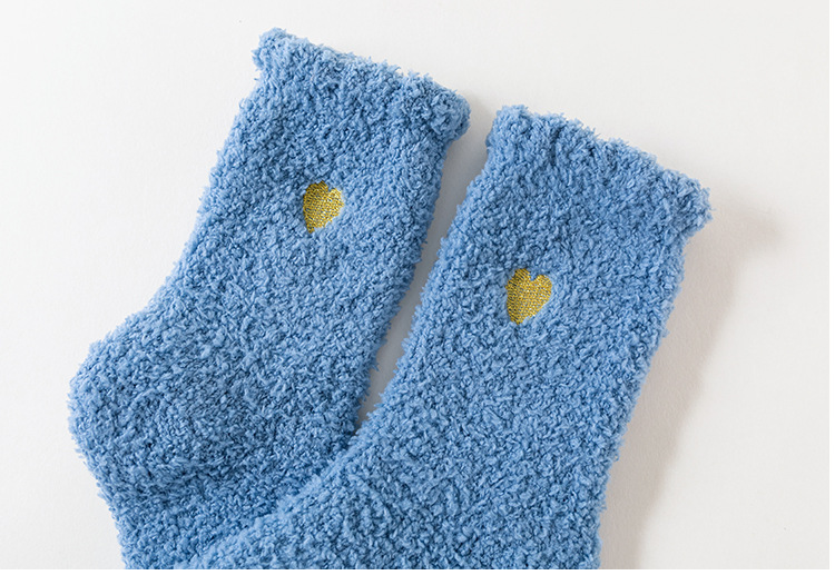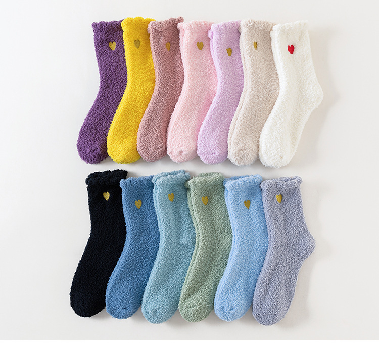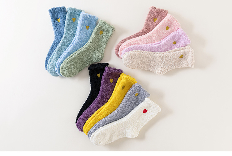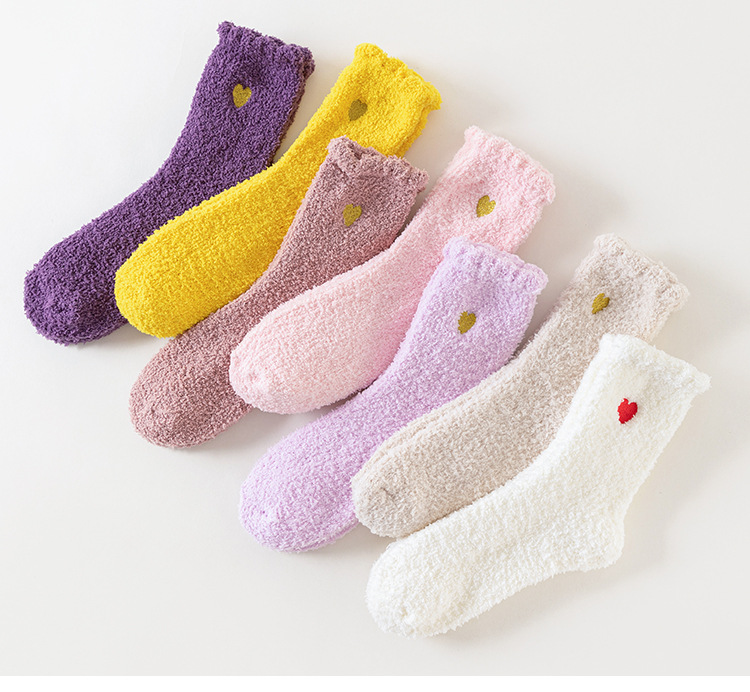 Кросс-бордерные осенне-зимние носки из кораллового флиса, утолщенные, японский стиль, вышитые сердцем, домашние носки, теплые носки для сна
