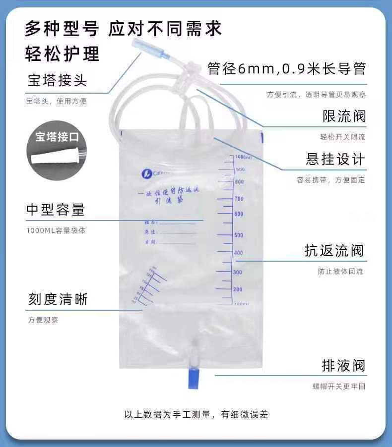Одноразовый дренажный мешок для сбора мочи 1500 мл, медицинский мочевой мешок, больничный мешок для пожилых людей, антирефлюксный мочевой мешок