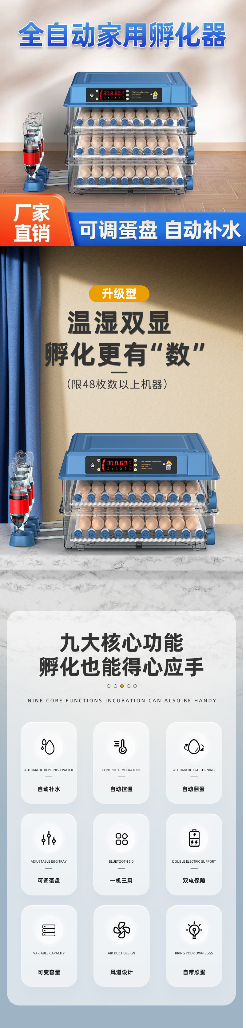 ![]() | Dual-electric fully automatic - 64 temperature and humidity dual displays [automatic egg turning + automatic water replenishment] | ¥394.8 / ≈ 4 756 ₽ | 1000 | 5932894692457 | |