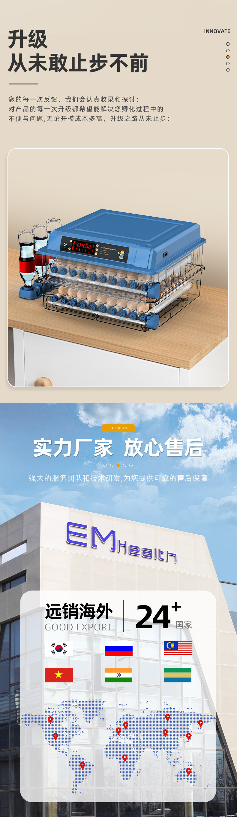 ![]() | Single electric model, fully automatic - 6 adjustable rollers [automatic egg turning + automatic water replenishment] | ¥118.8 / ≈ 1 431 ₽ | 1000 | 5932894692428 | |