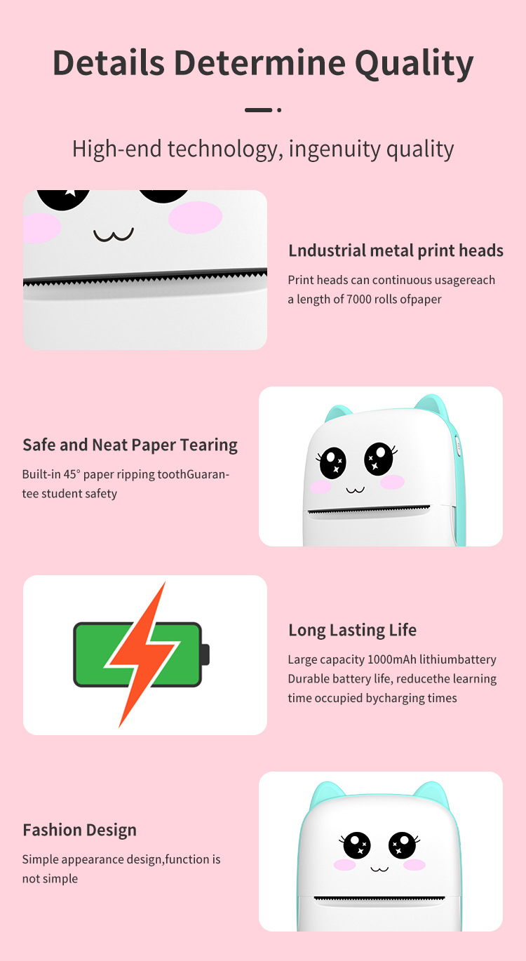 Портативный мини-принтер для этикеток без чернил, термопринтер для фото, недорогой, с высоким разрешением