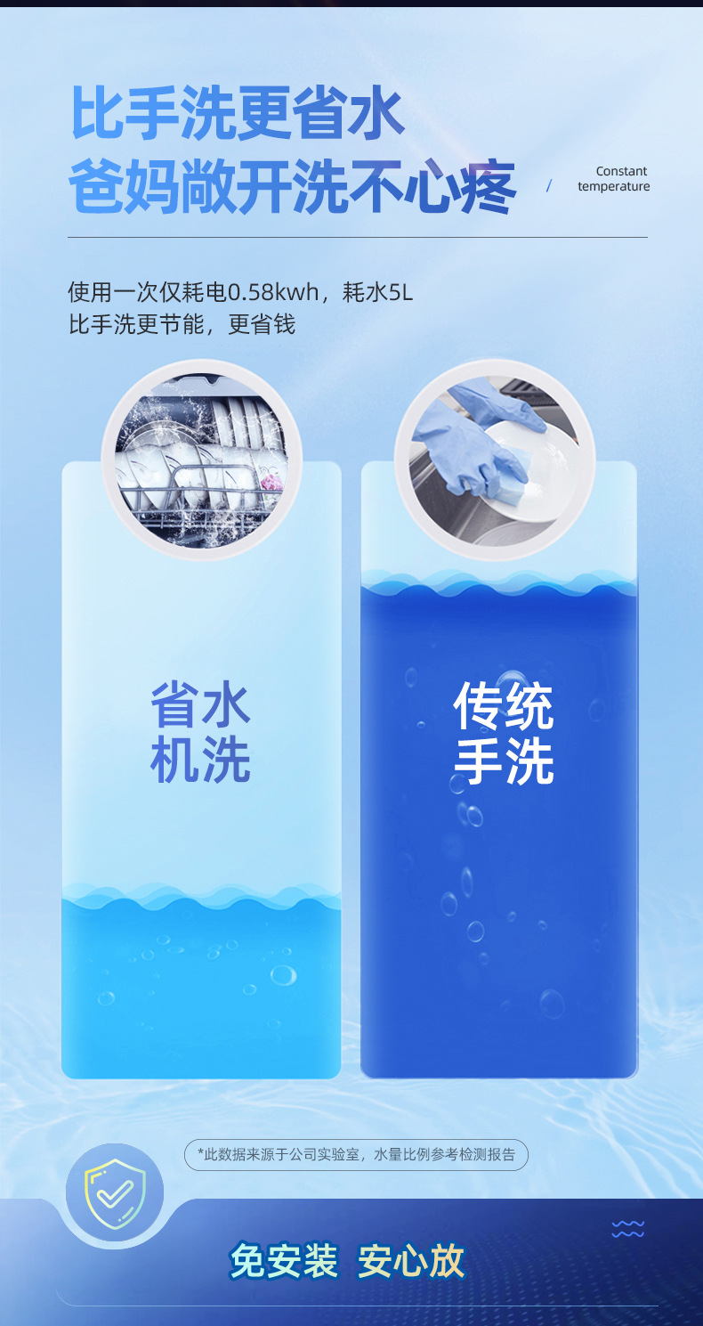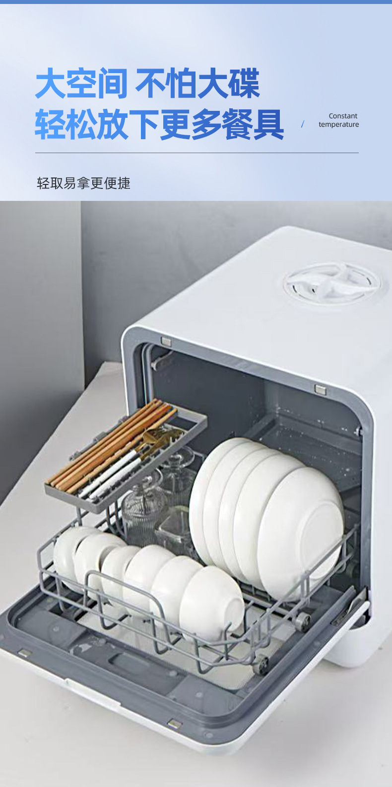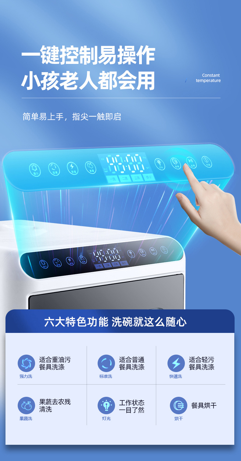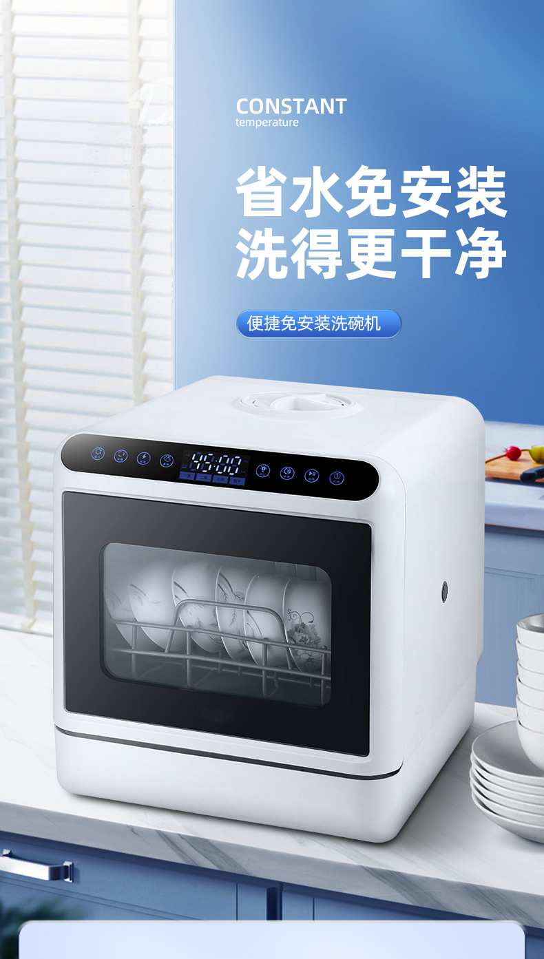 Настольная посудомоечная машина для дома, компактная, без установки, полностью автоматическая, с высоким давлением, интеллектуальная дезинфекция и сушка, с баком для воды и сливом