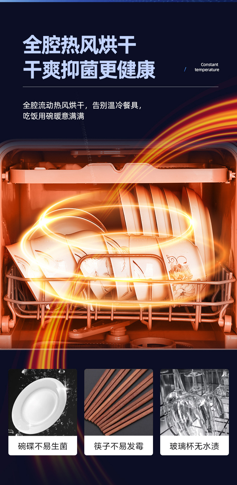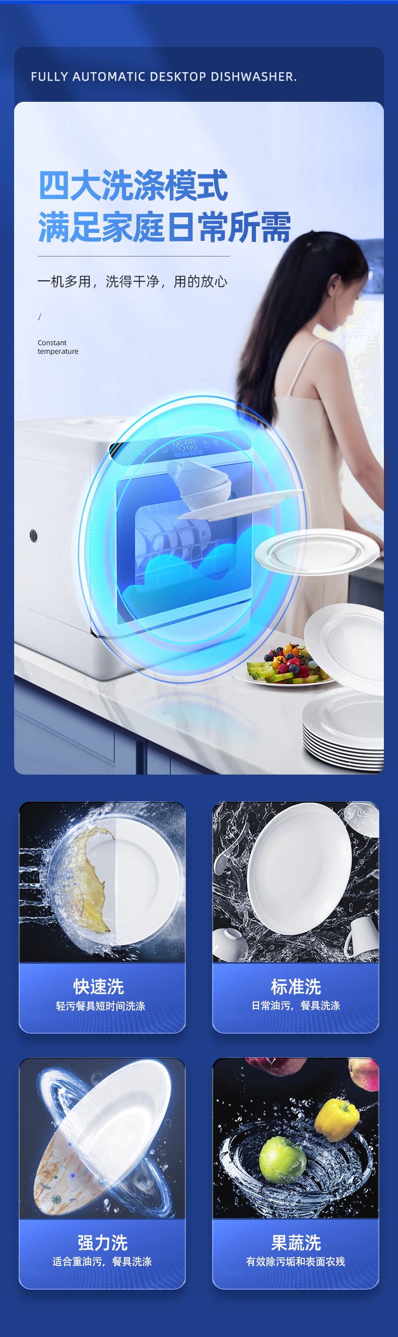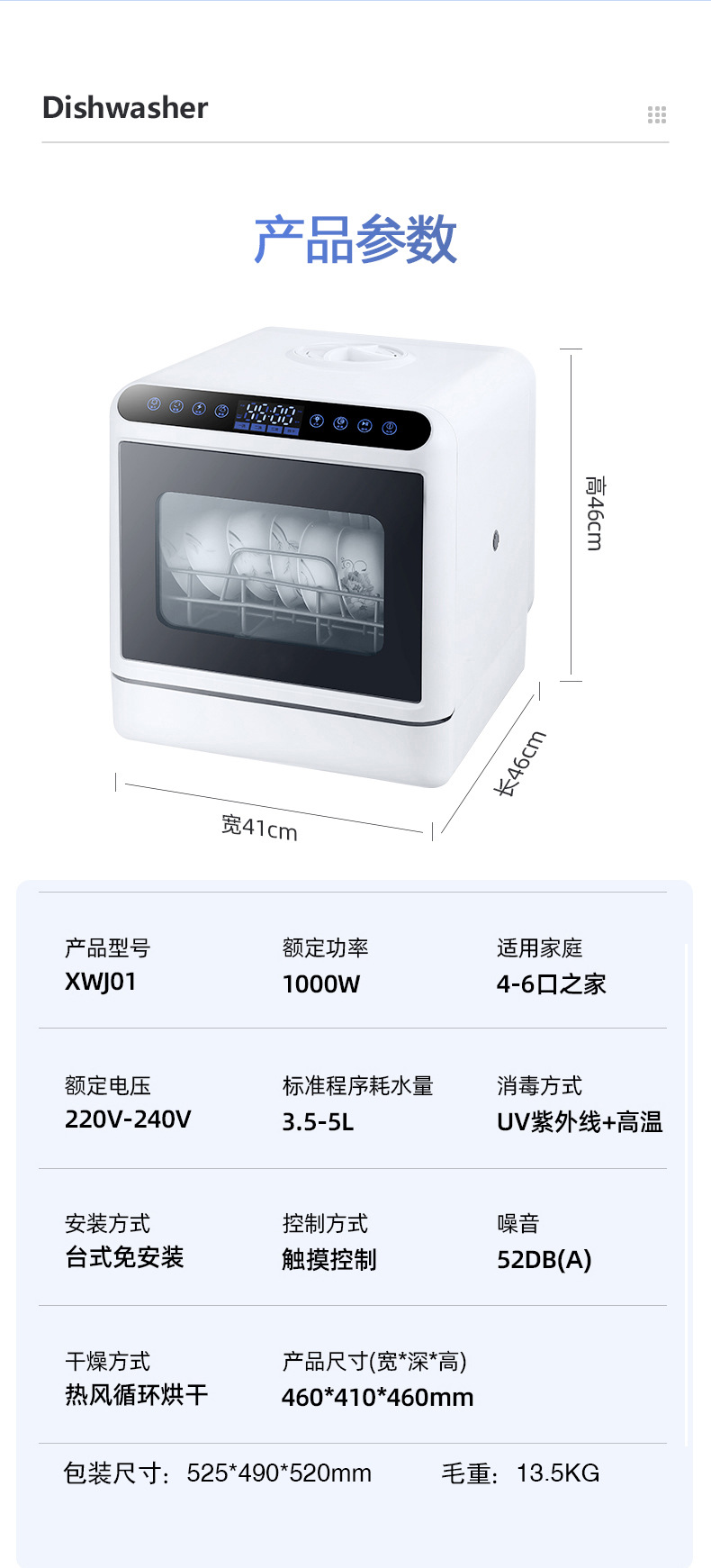 Настольная посудомоечная машина для дома, компактная, без установки, полностью автоматическая, с высоким давлением, интеллектуальная дезинфекция и сушка, с баком для воды и сливом