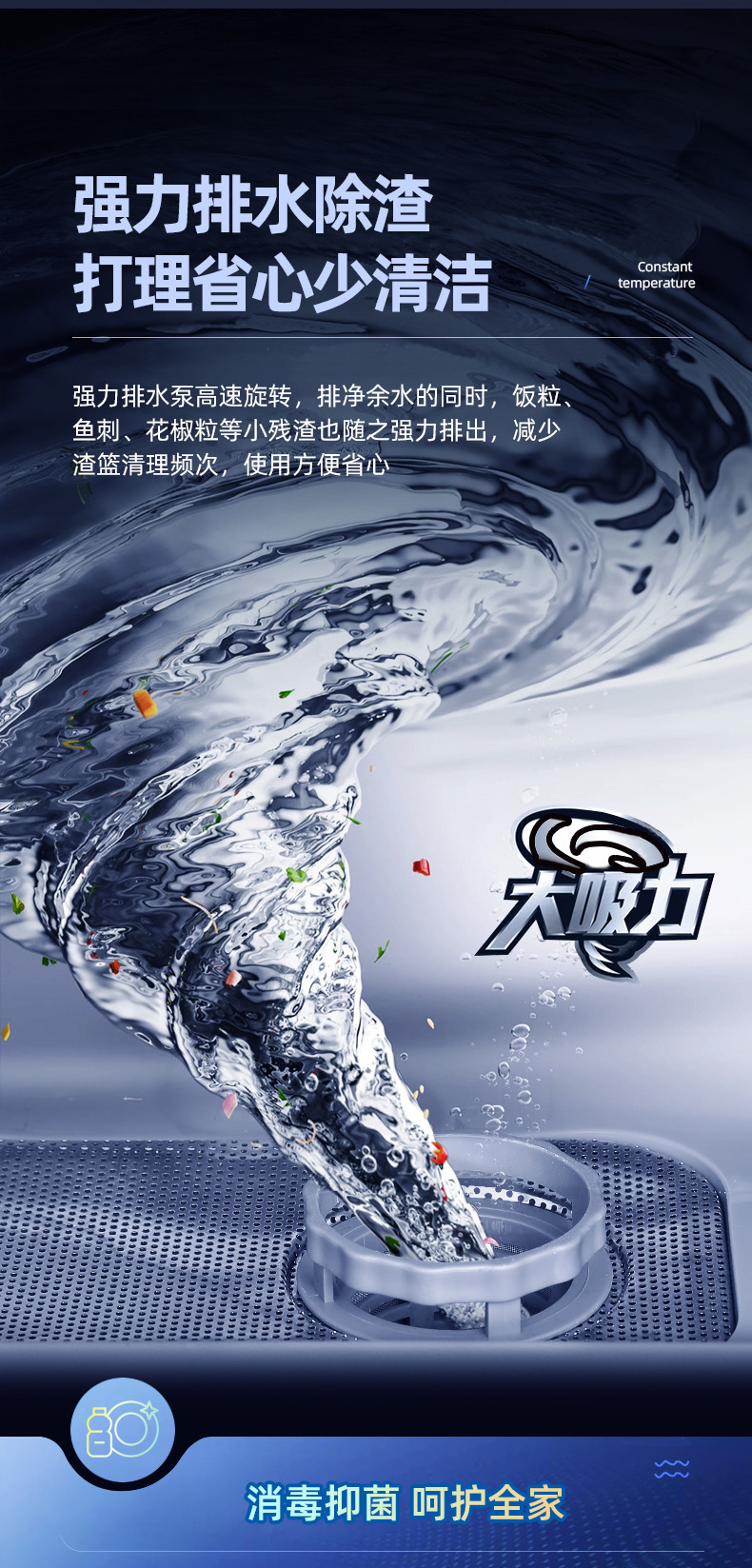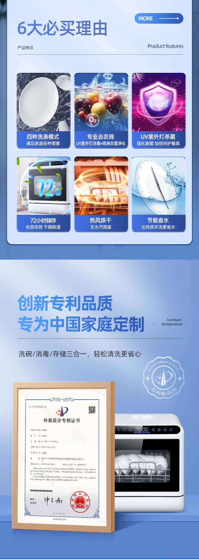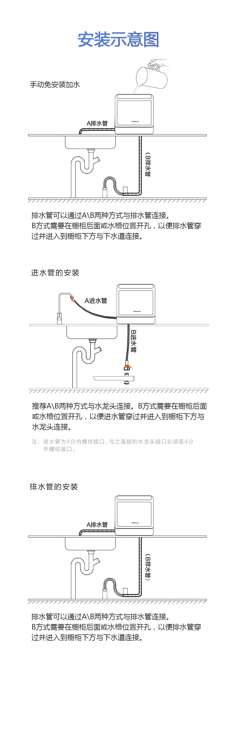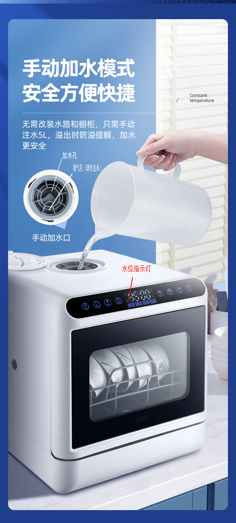 Настольная посудомоечная машина для дома, компактная, без установки, полностью автоматическая, с высоким давлением, интеллектуальная дезинфекция и сушка, с баком для воды и сливом