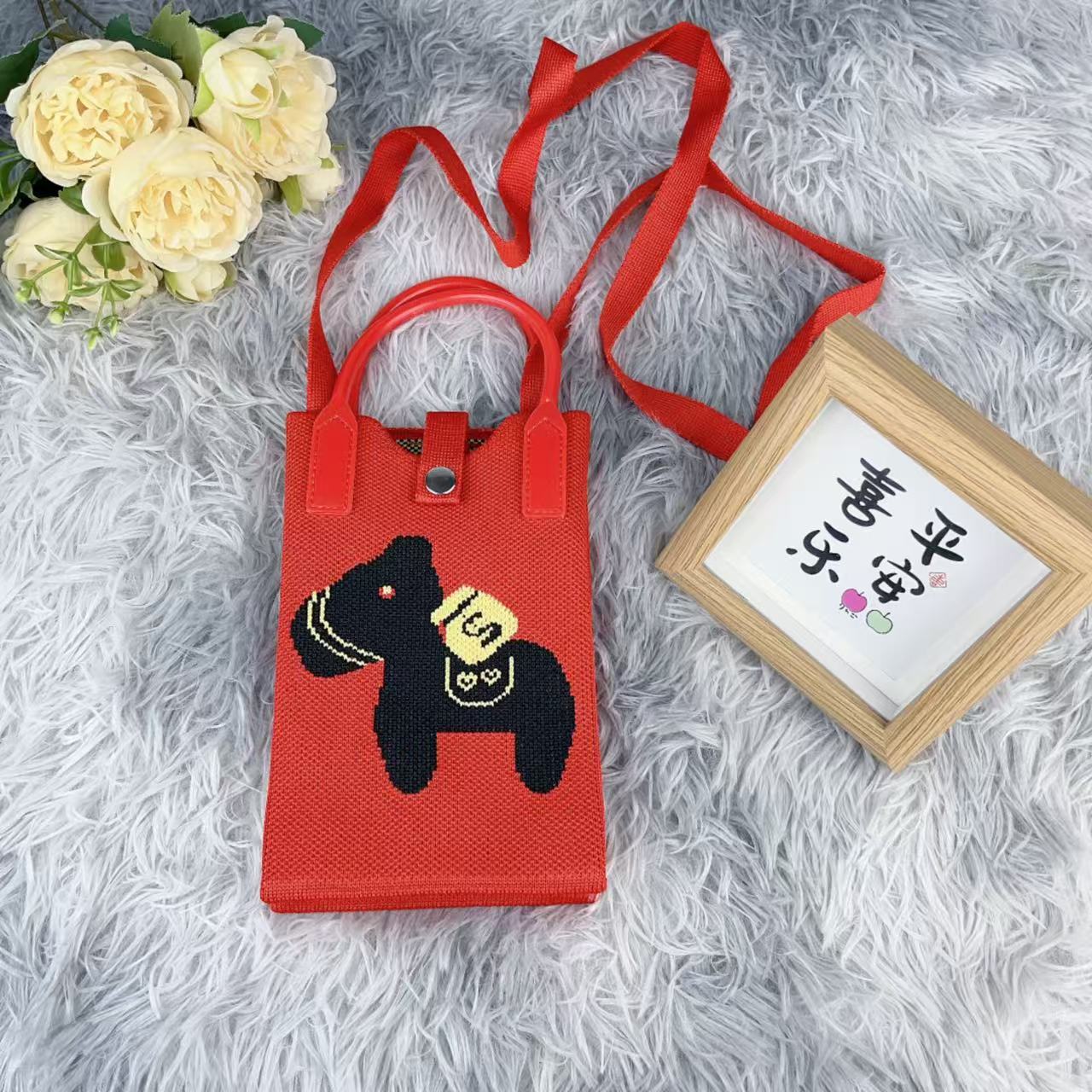 сумка года лошади, богатейте немедленно, мобильная телефонная сумка, вязаные изделия, силиконовая сумка, портативная, можно носить через плечо, необходимая для праздников