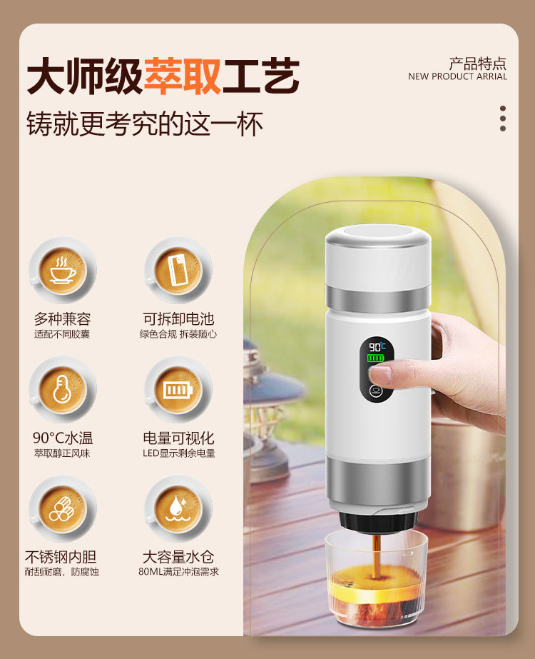 Кросс-бордерный новый продукт портативная капсульная кофемашина с съемным аккумулятором электрическая маленькая беспроводная нагревательная насосная кофемашина