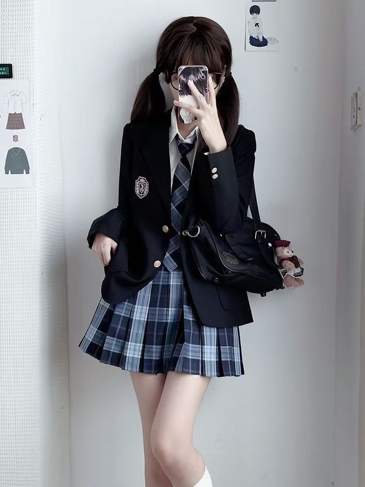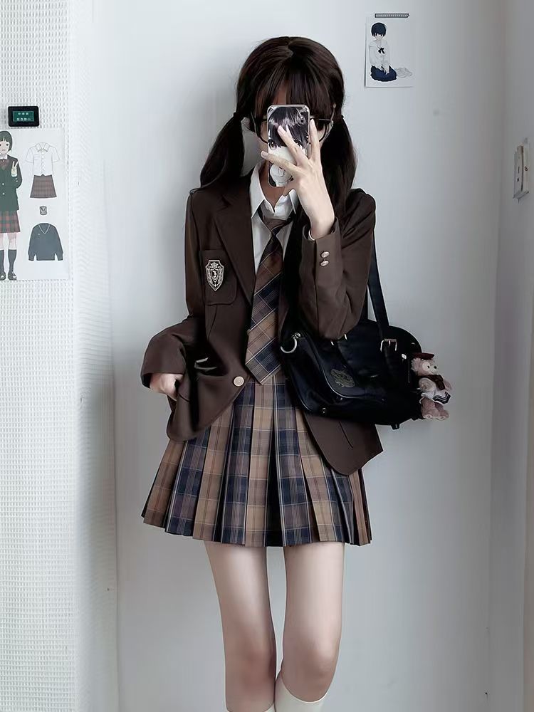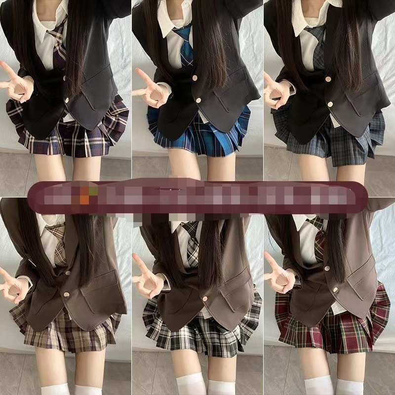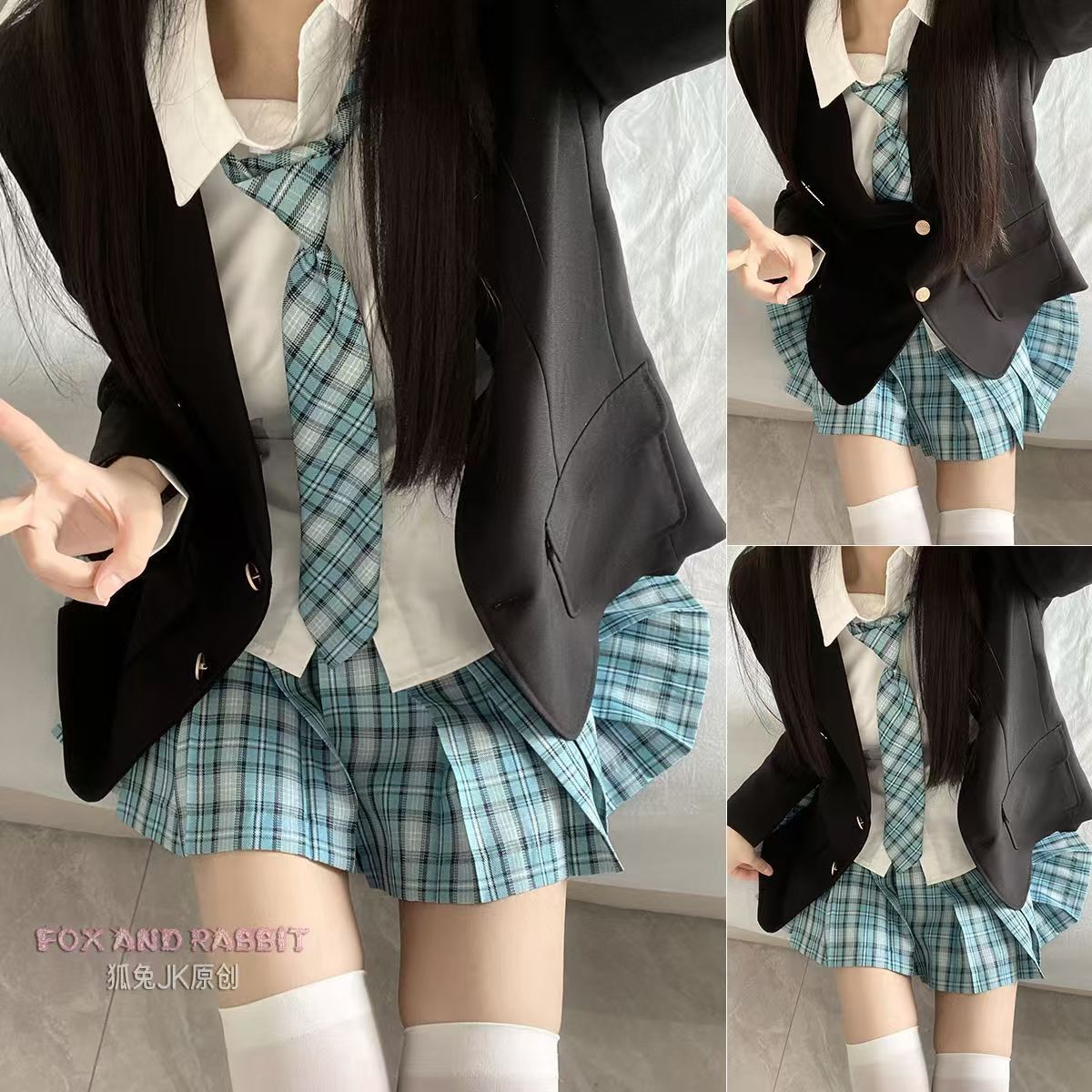 Женский костюм JK полный комплект, оригинальный пиджак, рубашка, юбка в клетку, японский стиль, стиль преppy