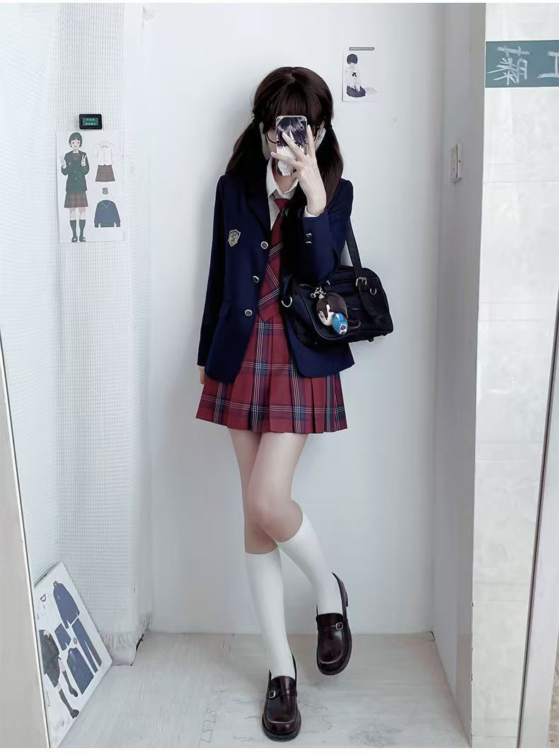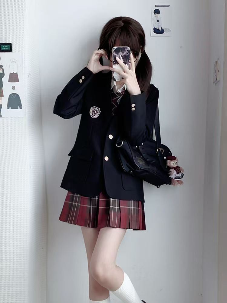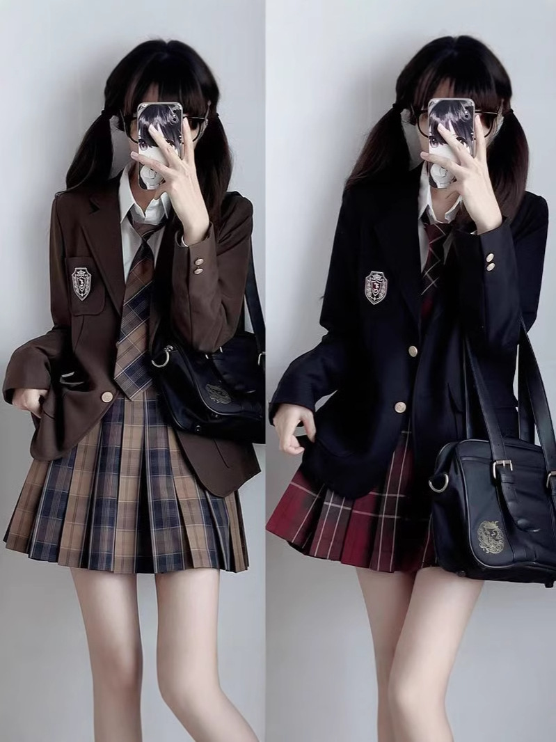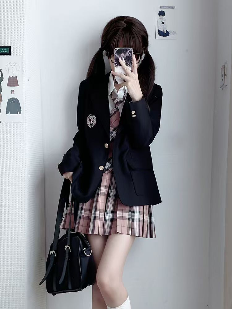 Женский костюм JK полный комплект, оригинальный пиджак, рубашка, юбка в клетку, японский стиль, стиль преppy