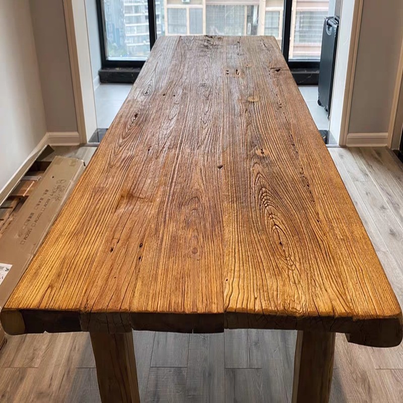 Стол из старой ели с дверной панелью, ретро большой стол, ностальгический барный стол, старое деревянное бревно, стол из бревна, потертый чайный стол для отеля B&B