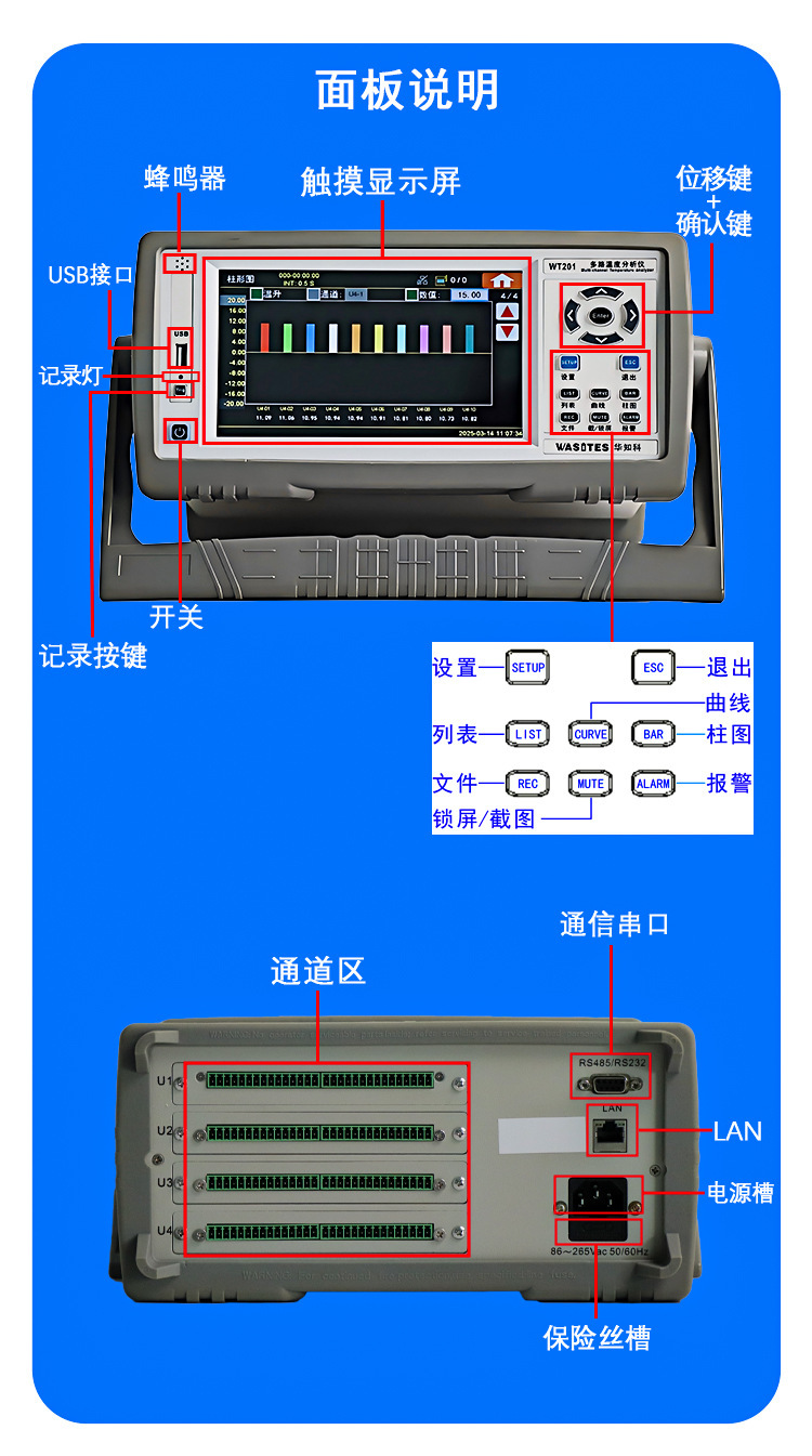 Huazhike Высокоточный многоканальный температурный анализатор Wt201 Многоканальный термометр-регистратор