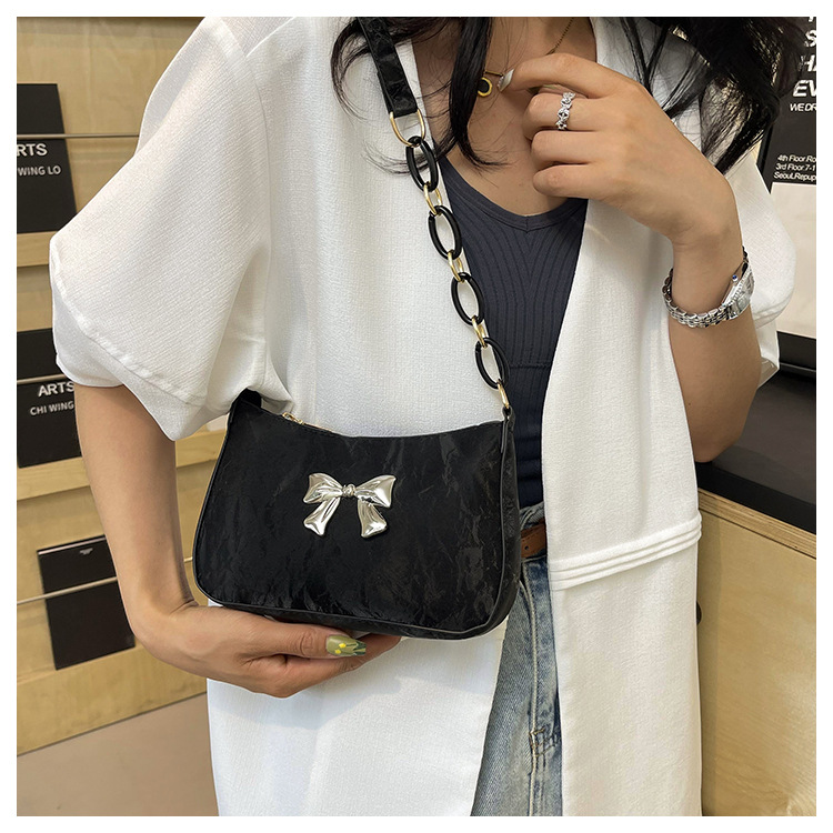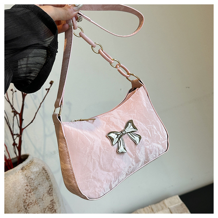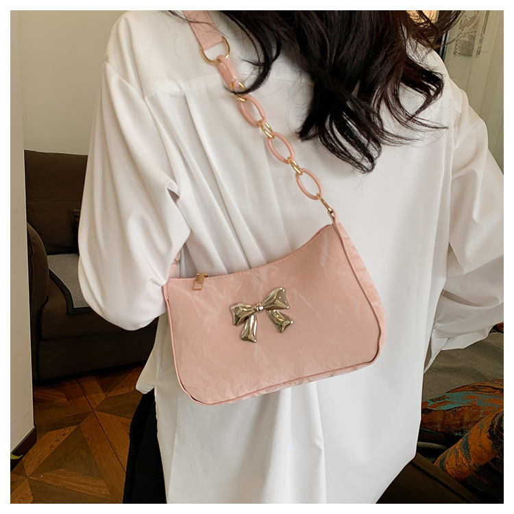 Кармашек подмышкой в корейском стиле для женщин, новая сладкая и стильная сумка через плечо, популярный стиль интернет-знаменитостей, модная сумка с бантом и цепочкой