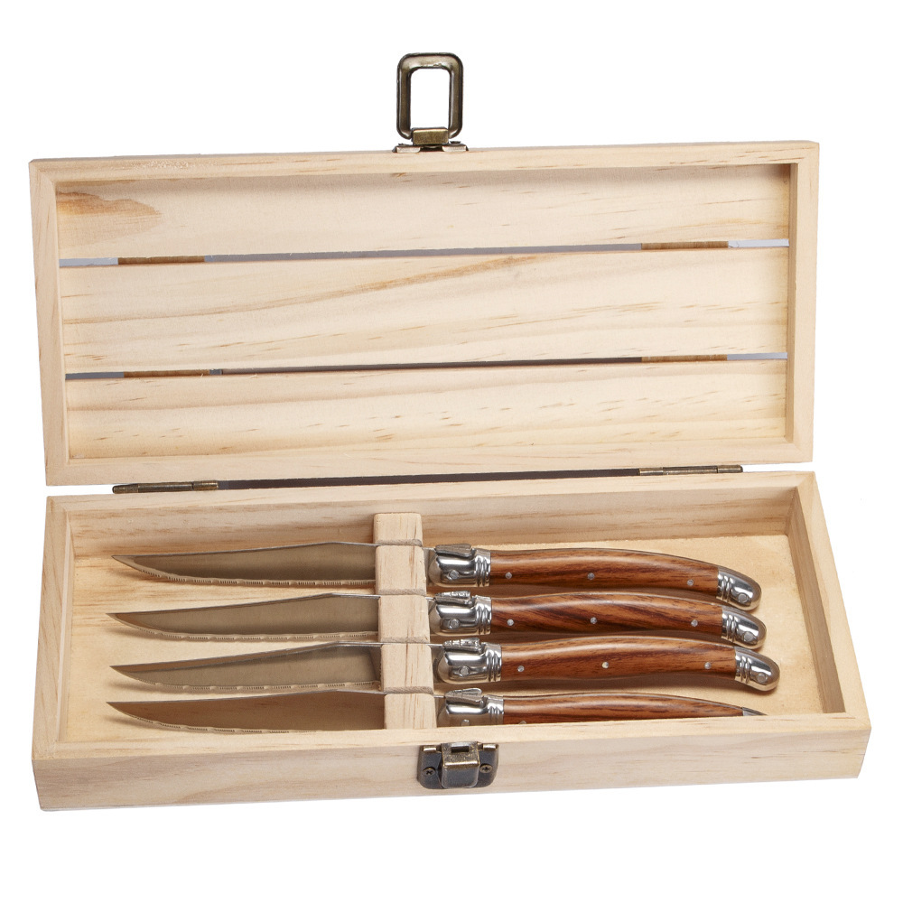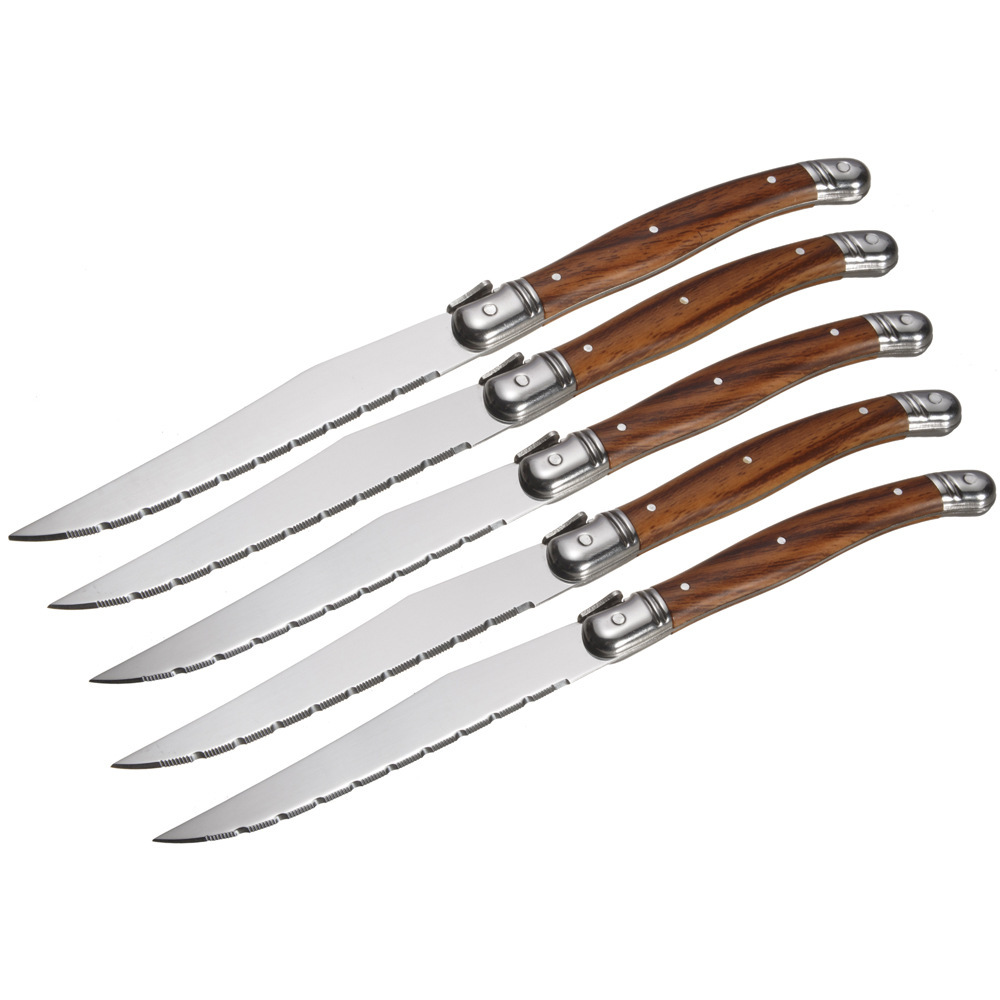 Готовая посуда для западной еды от транснациональных производителей, ножи для стейка с пластиковыми ручками под дерево, ножи для стейка, столовые приборы