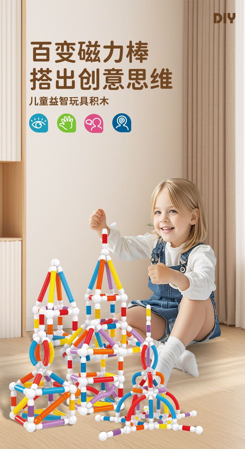 Кросс-бордерные магнитные телескопические палочки для детей, многофункциональные пирамидальные строительные блоки, сильные магнитные строительные блоки, образовательные игрушки для раннего обучения