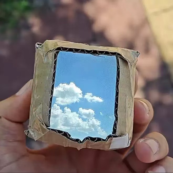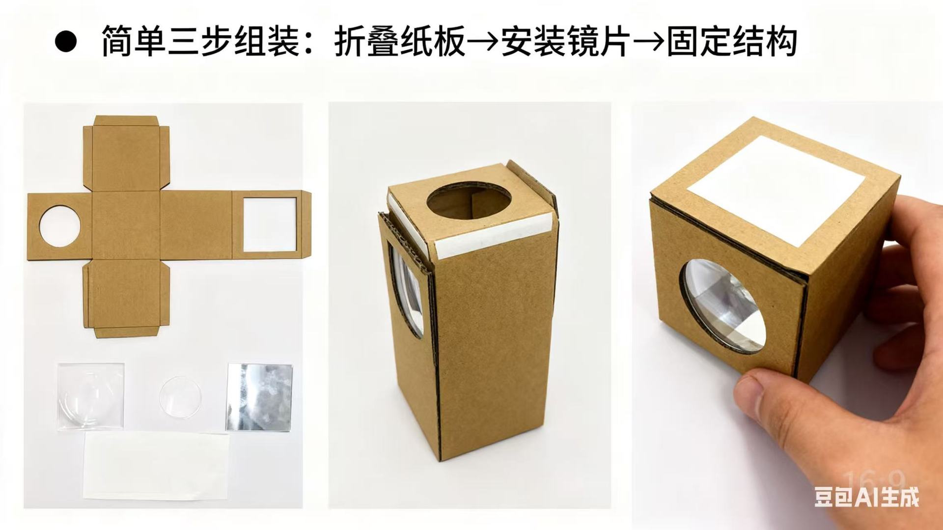 - 精准切割瓦楞纸板组件(带圆形取景口 + 方形观察口)