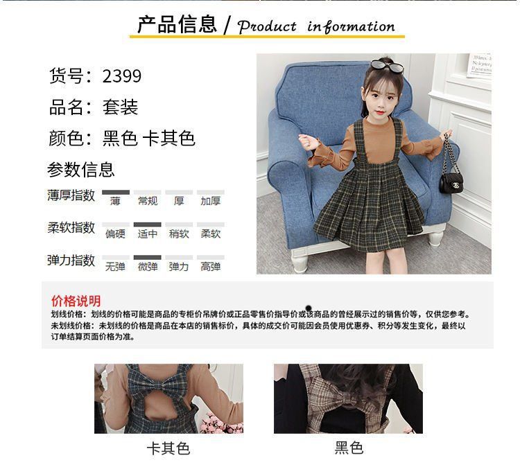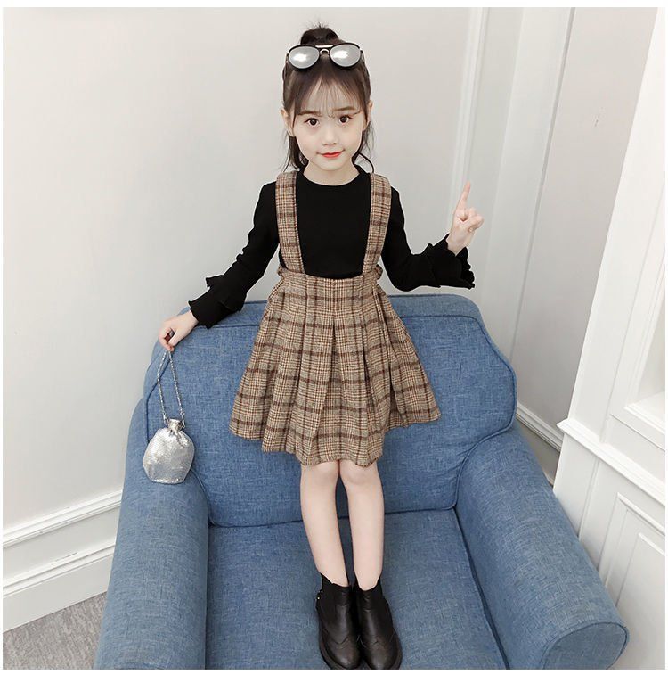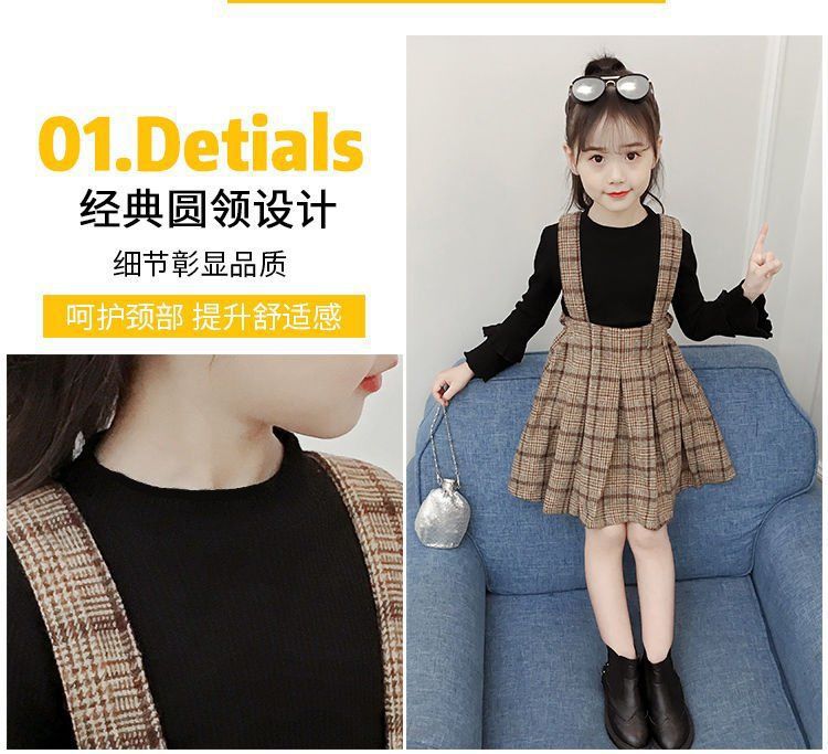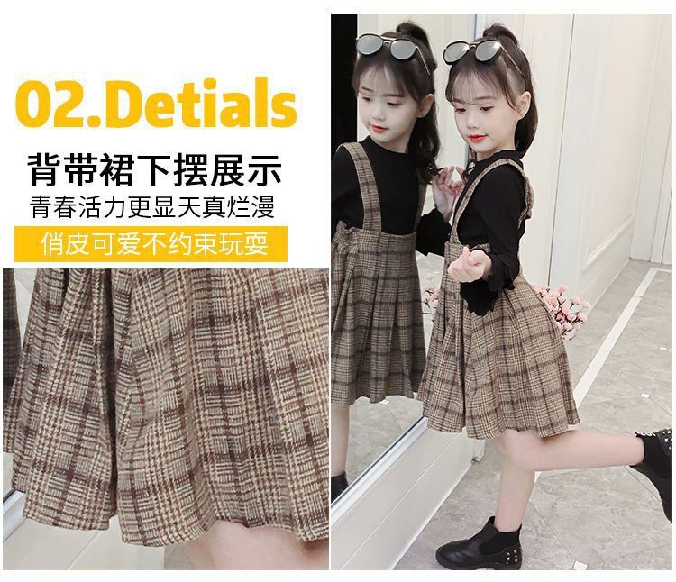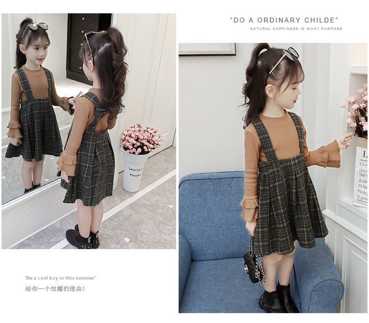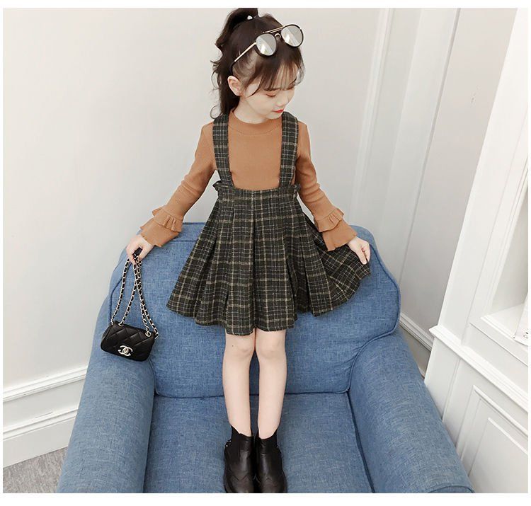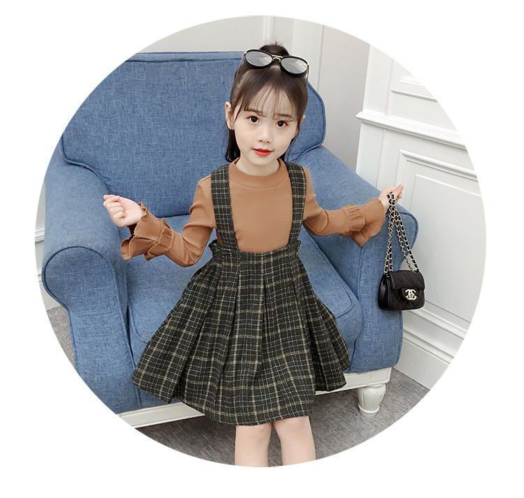 Комплект одежды для девочек весна-осень, корейский стиль, шершавая жилетка-платье, стильная базовая рубашка и юбка-суспензор, два предмета для детей