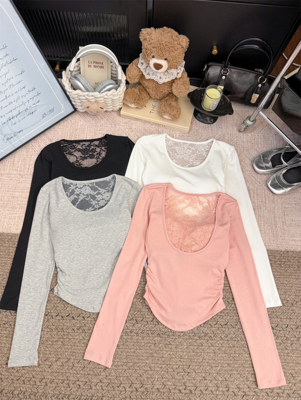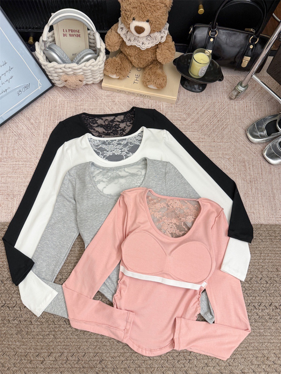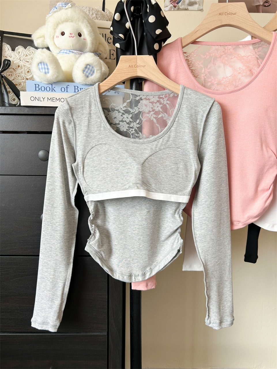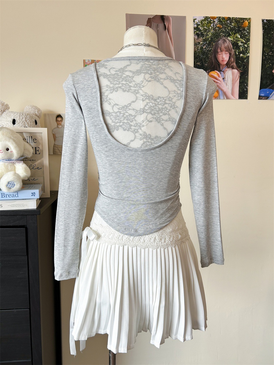 5165 Чистое желание, полое дизайнерское сексуальное блузка без спины, кружевная вставка, длинный рукав, облегающий базовый слой, модная блузка для осени и зимы
