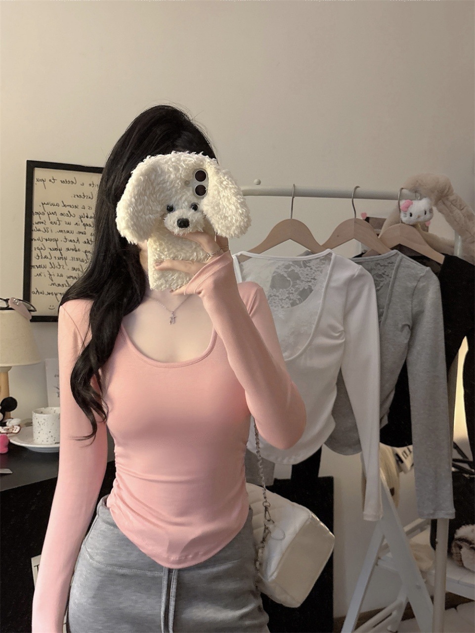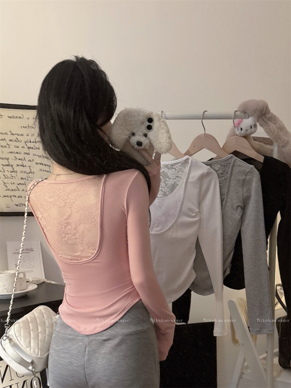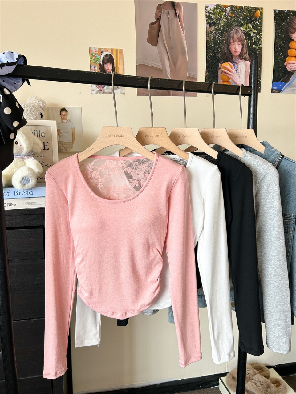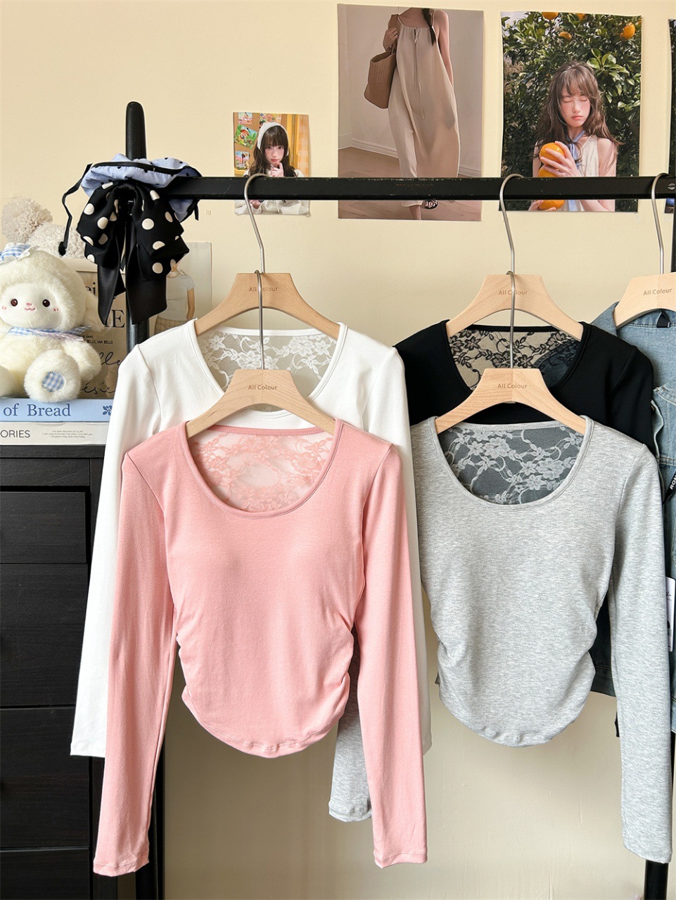 5165 Чистое желание, полое дизайнерское сексуальное блузка без спины, кружевная вставка, длинный рукав, облегающий базовый слой, модная блузка для осени и зимы