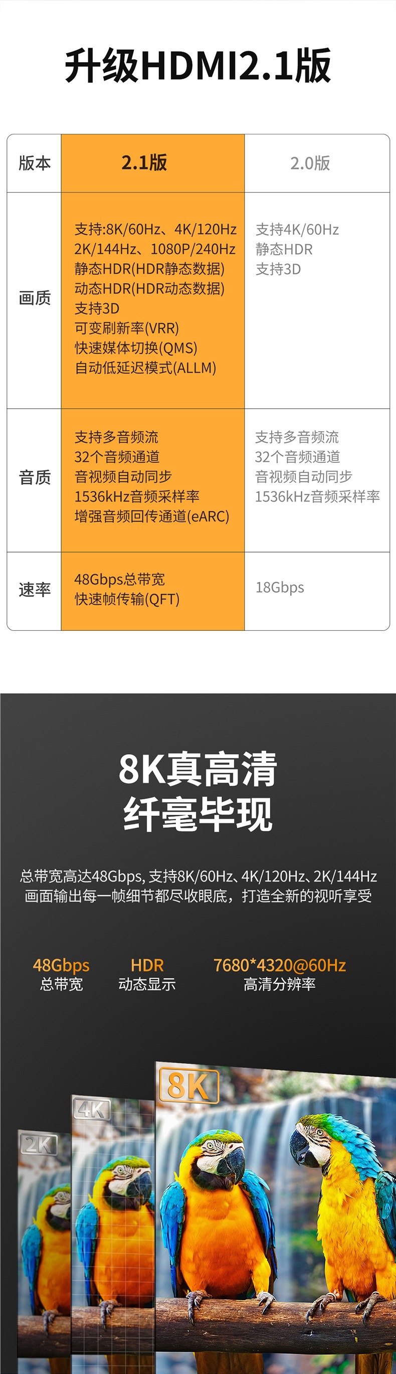HDMI кабель 2.1 высококачественный 4K8K для телевизора монитора приставки проектора компьютера длинное соединение