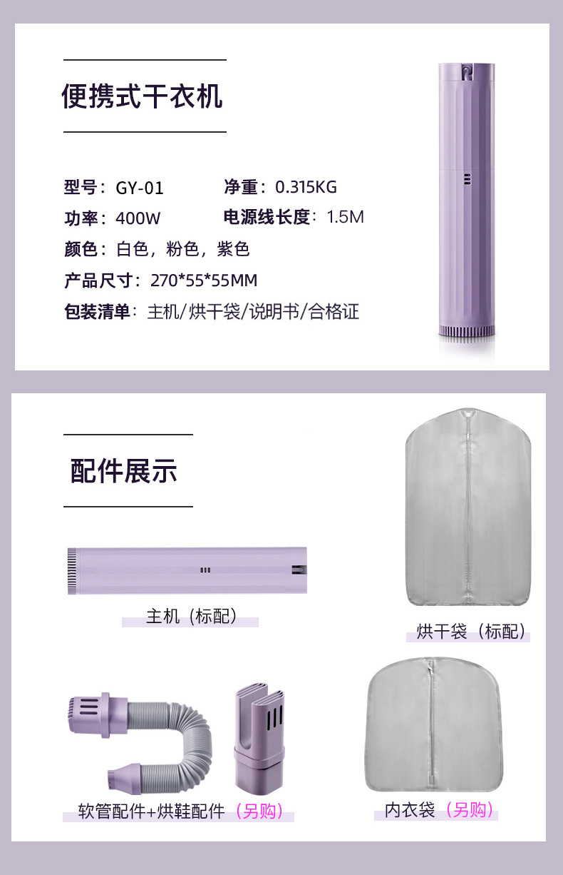 ![]() | Purple + warm quilt drying shoe tube | Private model high-quality multifunctional clothes dryer | ¥106.0 / ≈ 1 277 ₽ | 1985 | 5936506025610 | |