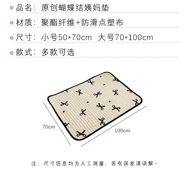 ![]() | 70*100cm [waterproof and anti-slip] | Bow tie | ¥11.31 / ≈ 136 ₽ | 9783 | 6102373498311 | |