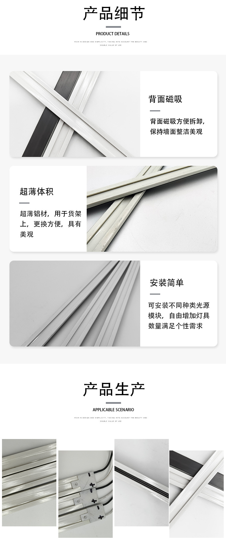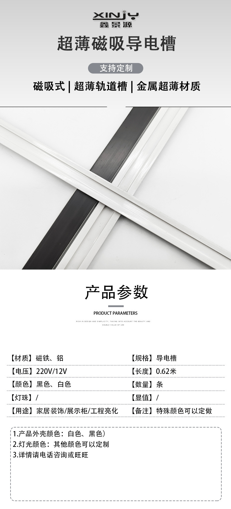 Ультратонкий магнитный проводящий паз, проводящая рейка для витрины, черно-белая инкрустированная скрытая силовая полоса