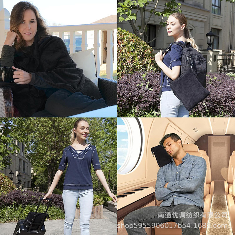 Плед для путешествий с сумкой для самолета, плед для обеденного перерыва с пряжкой, фланелевая складная leisure плед, двусторонний бархатный плед