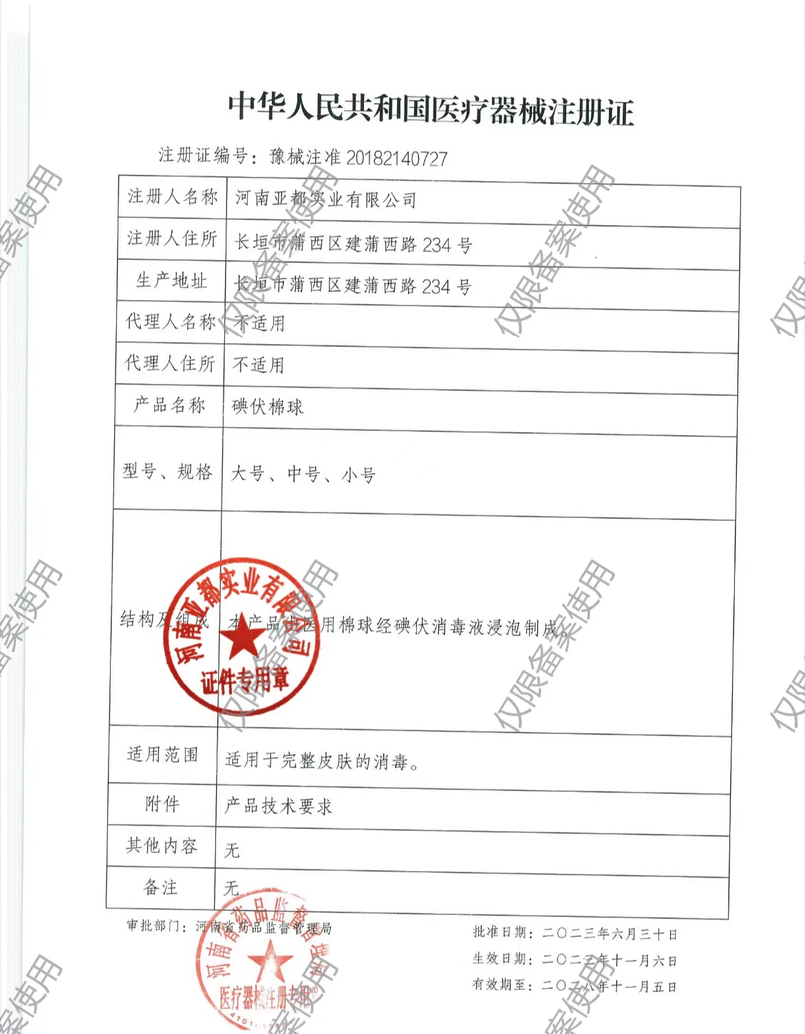 Слово о одобрении лекарства (устройства) Yu machinery note 20182140727